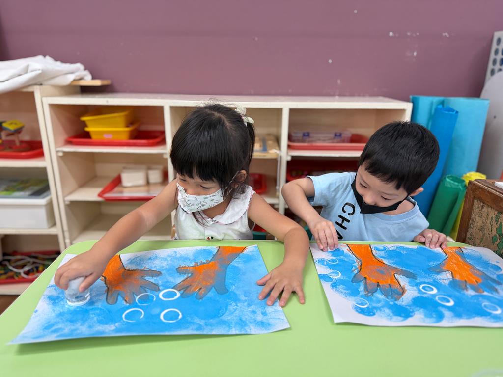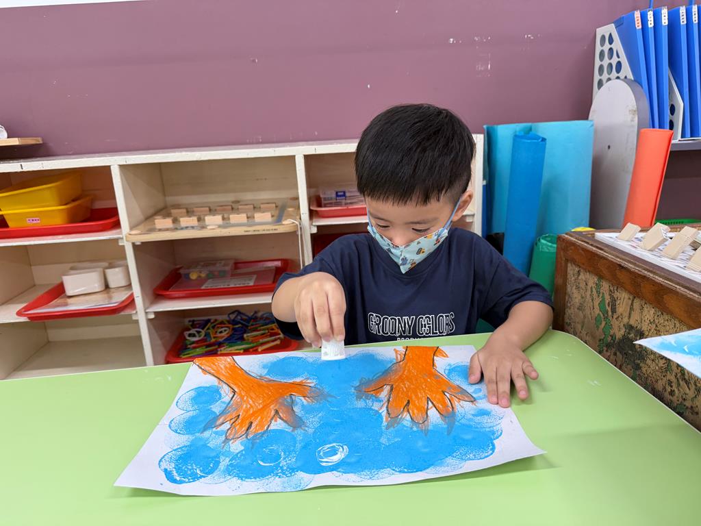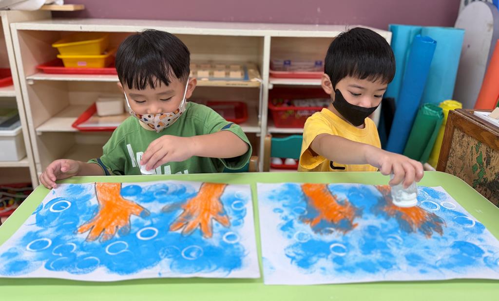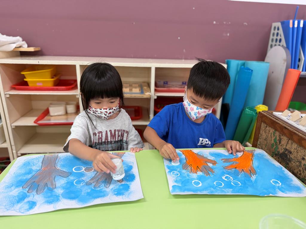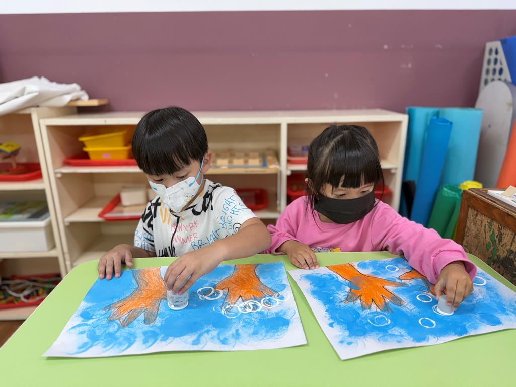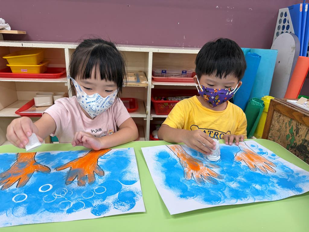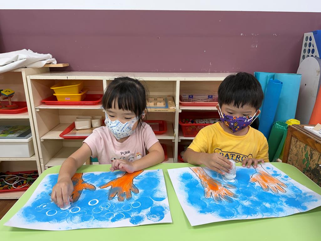 我們用瓶蓋沾顏料蓋出洗手要用的泡泡