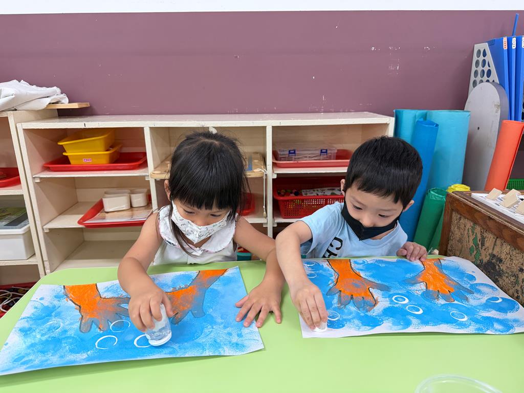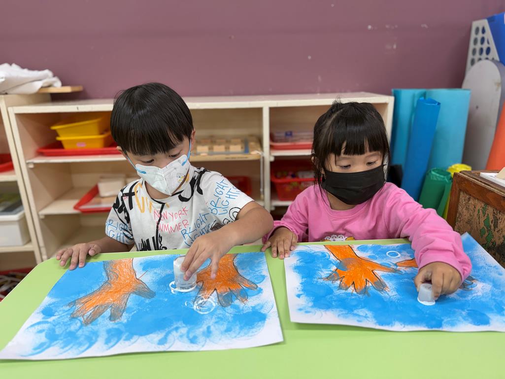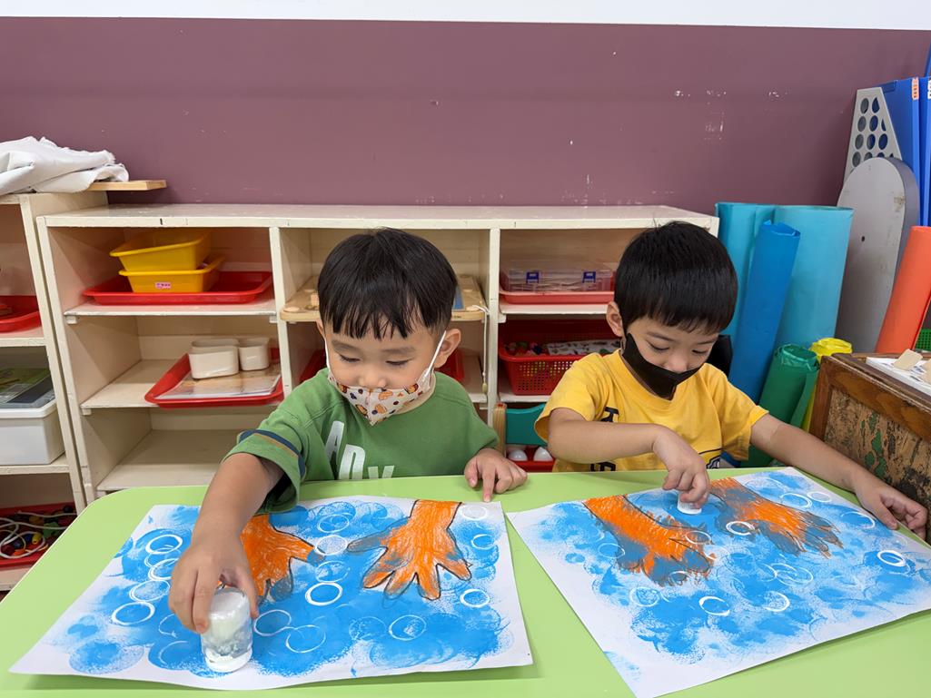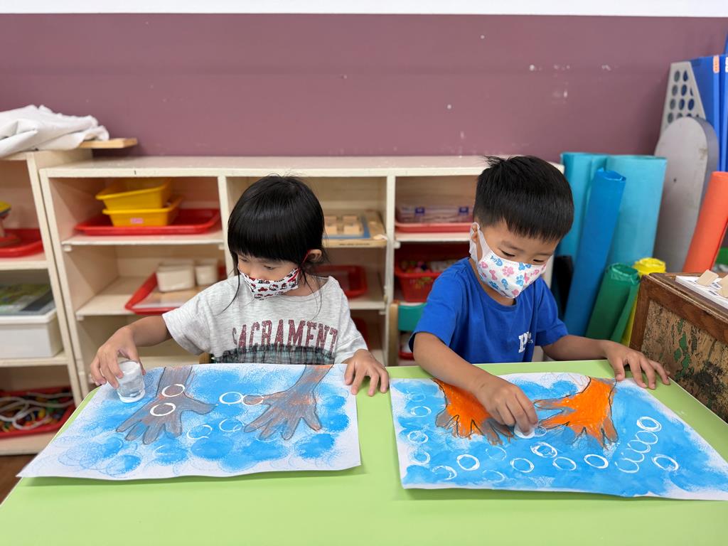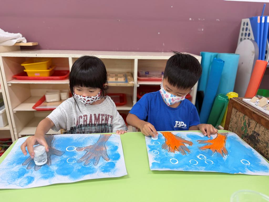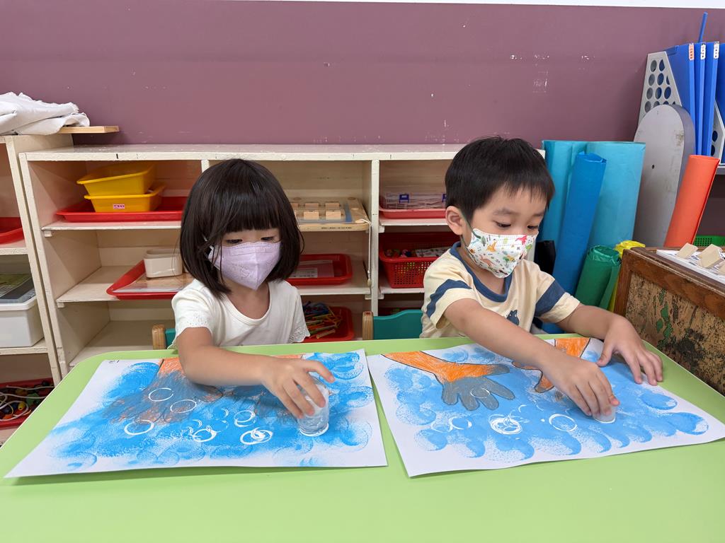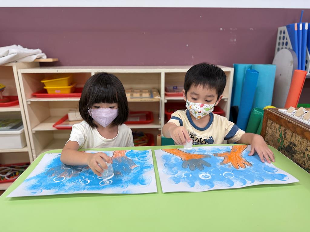 我們用瓶蓋沾顏料蓋出洗手要用的泡泡
