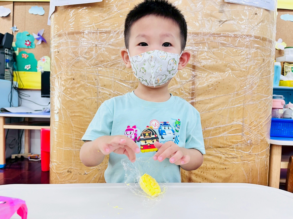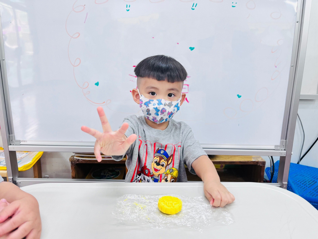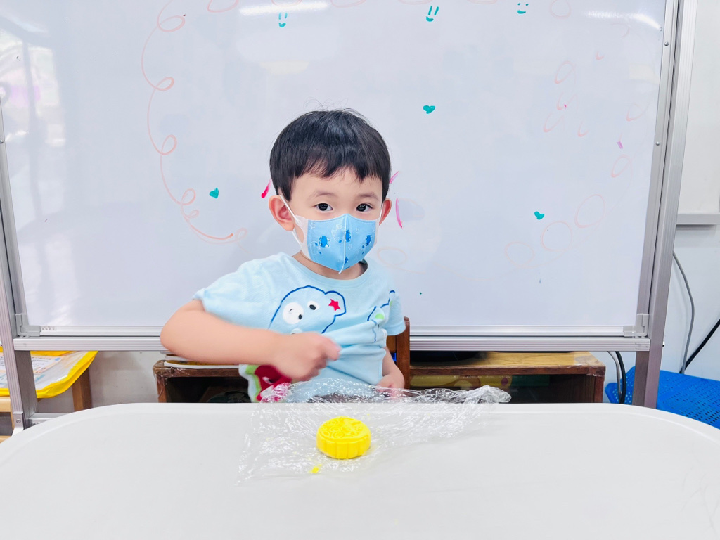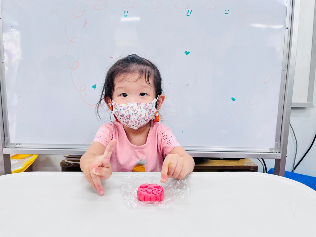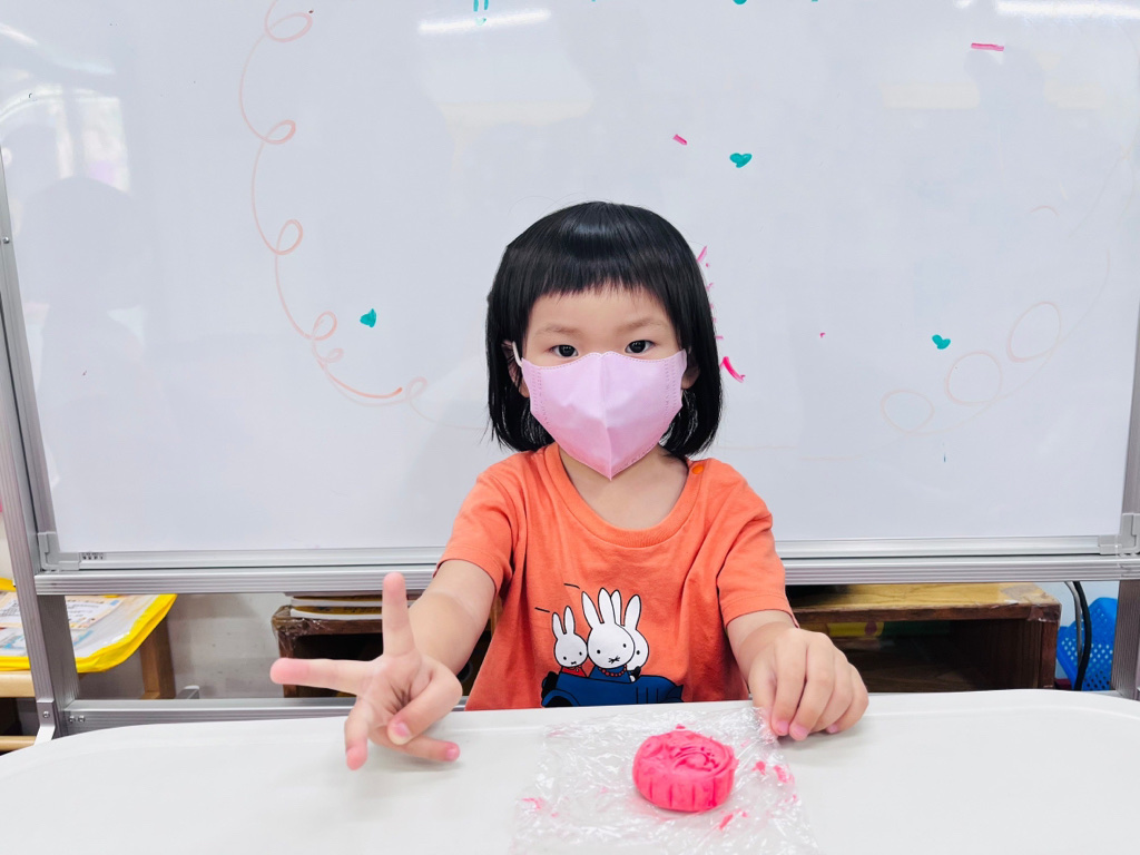 寶貝們正在運用輕黏土製作中秋月餅 哇~寶貝們都好厲害