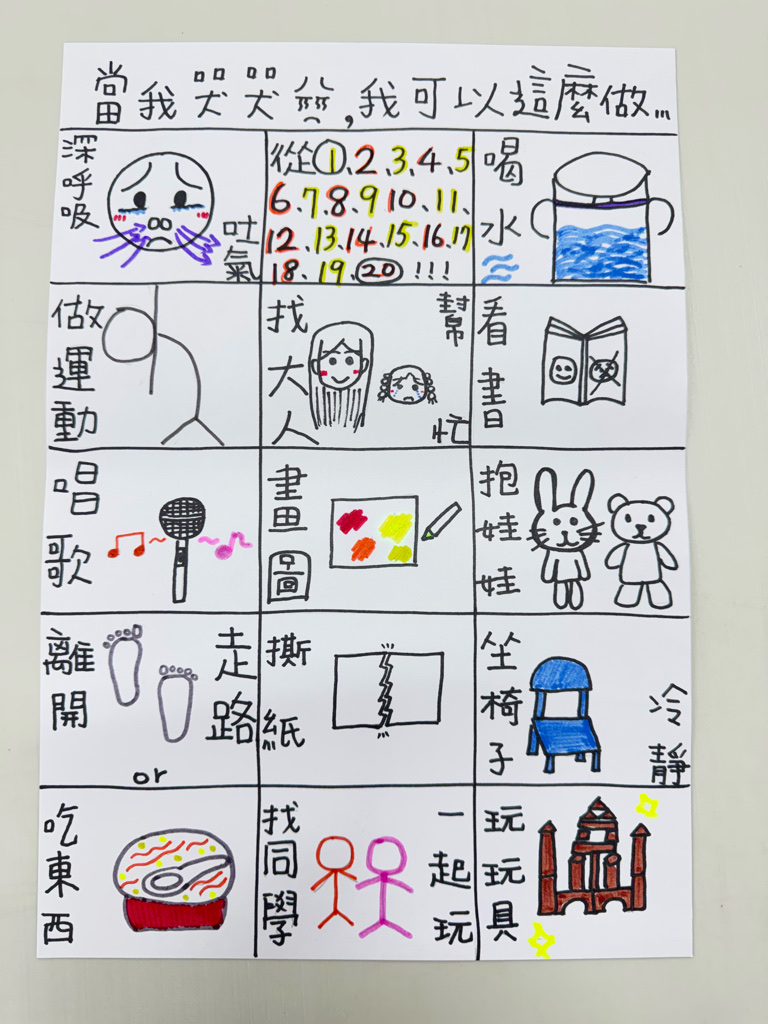 當你哭哭了,有什麼方法可以轉移注意力呢~?讓每個小朋友都抽一張圖卡來演練看看吧!
