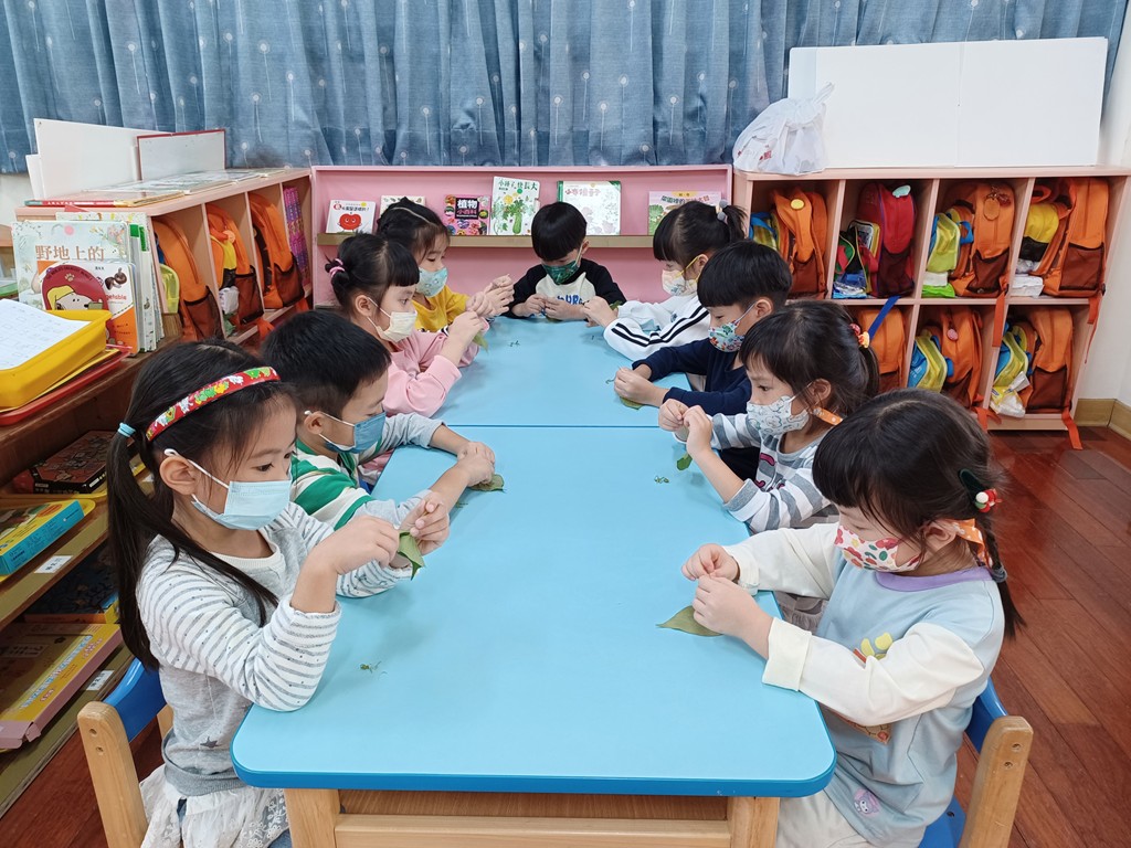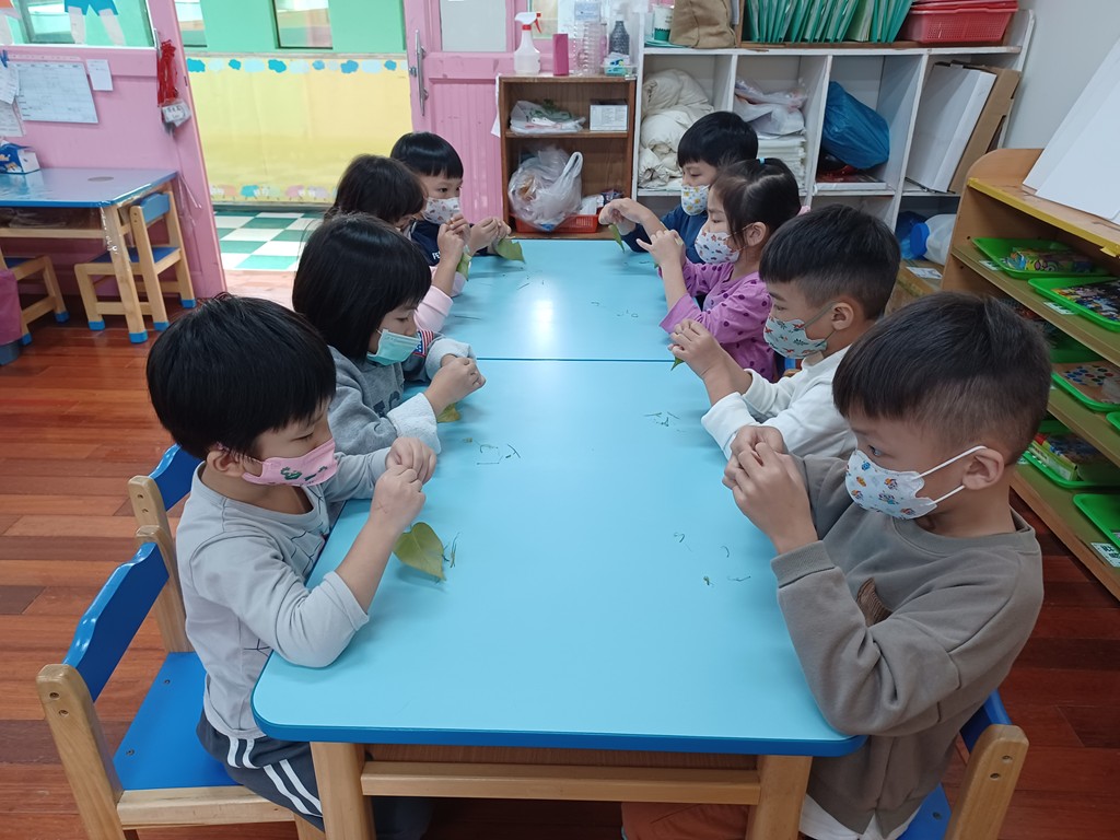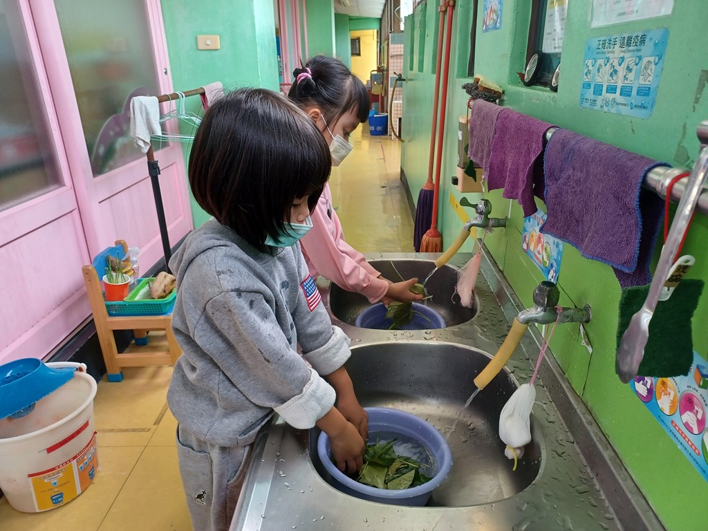 每天照顧與觀察地瓜葉的生長情形,發現葉子越長越大片且越長越多,與孩子討論後,決定採收地瓜葉,撕下莖的外層皮,清洗後川燙烹煮。