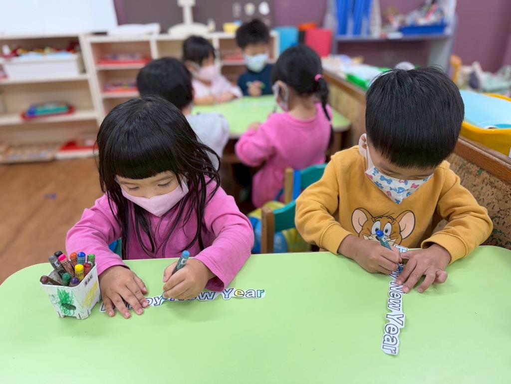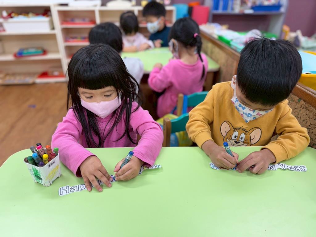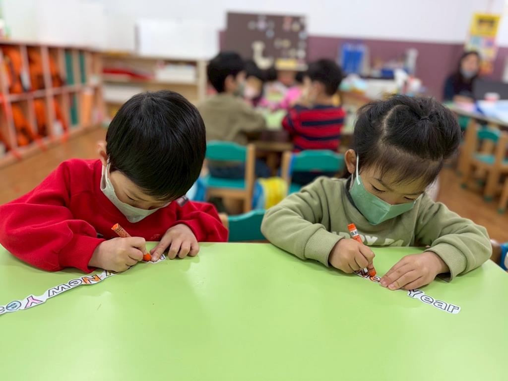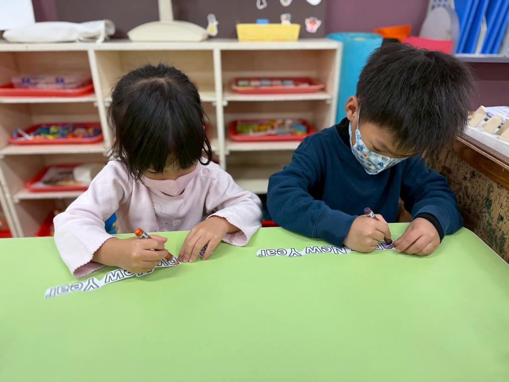 運用蠟筆為「Happy New Year」塗上漂亮的顏色