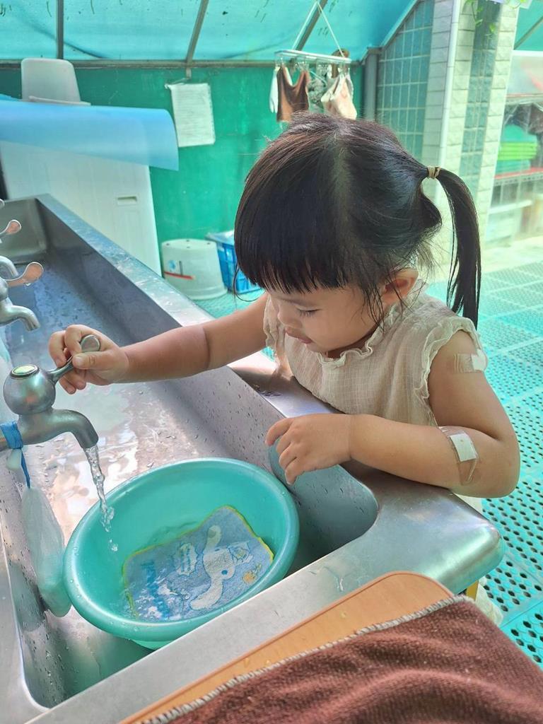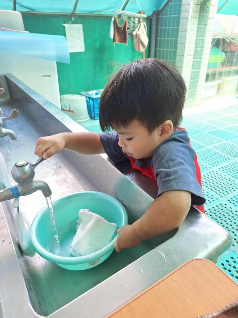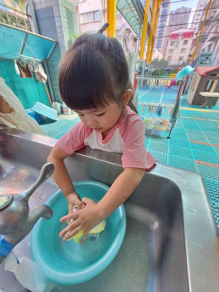 玩躲貓貓前會先聽從老師的遊戲規則及範圍,躲好後鬼會去找出,找到會再點看看是否全部找到,我會練習自己洗臉