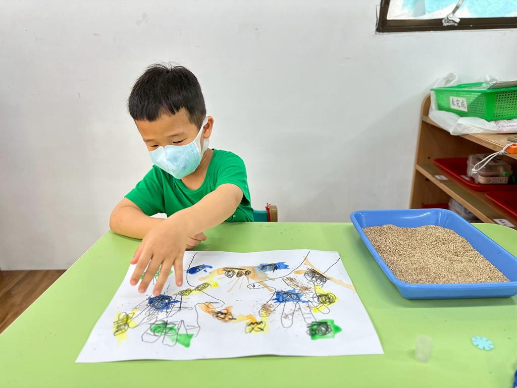 撒上沙子將手中的細菌呈現出來