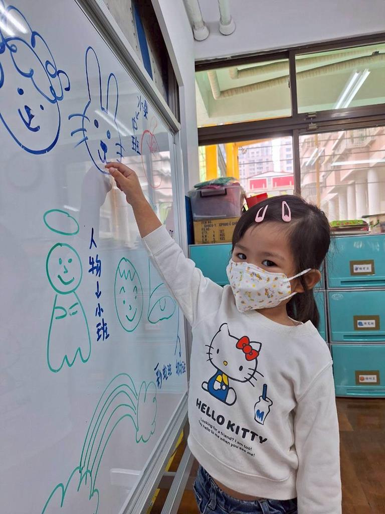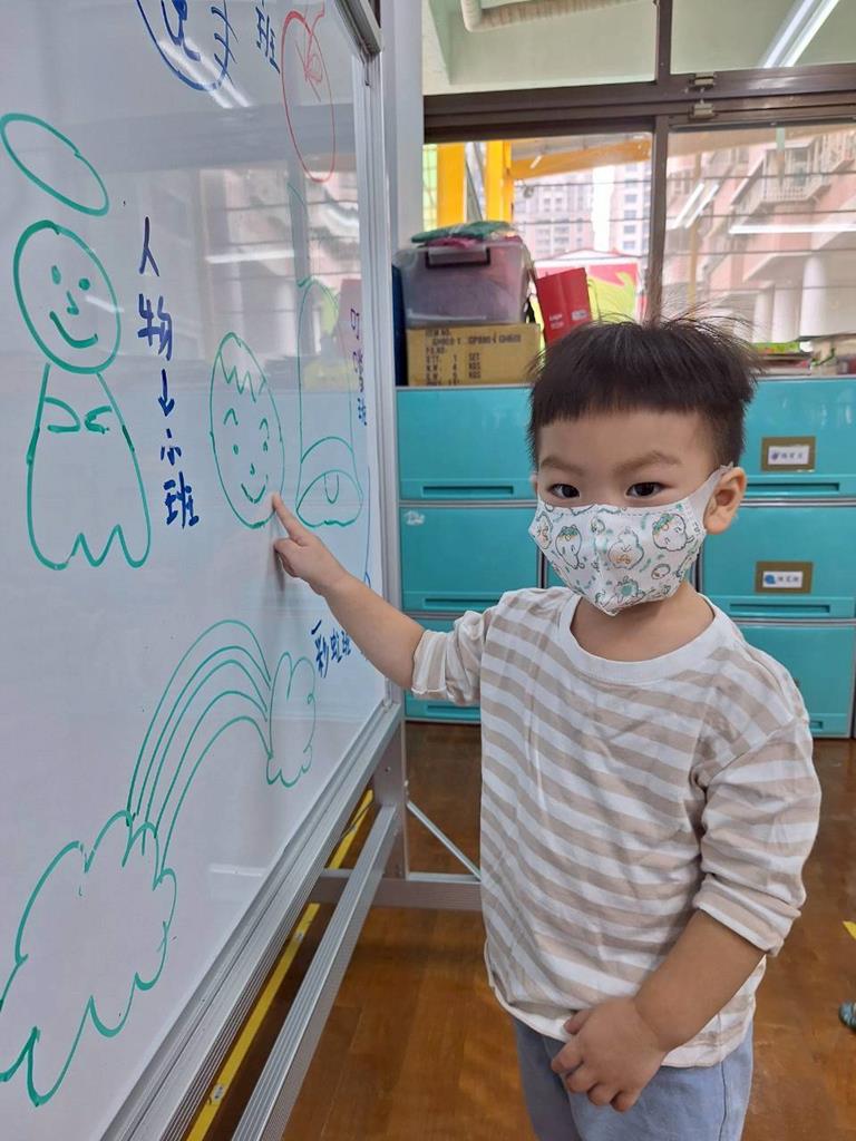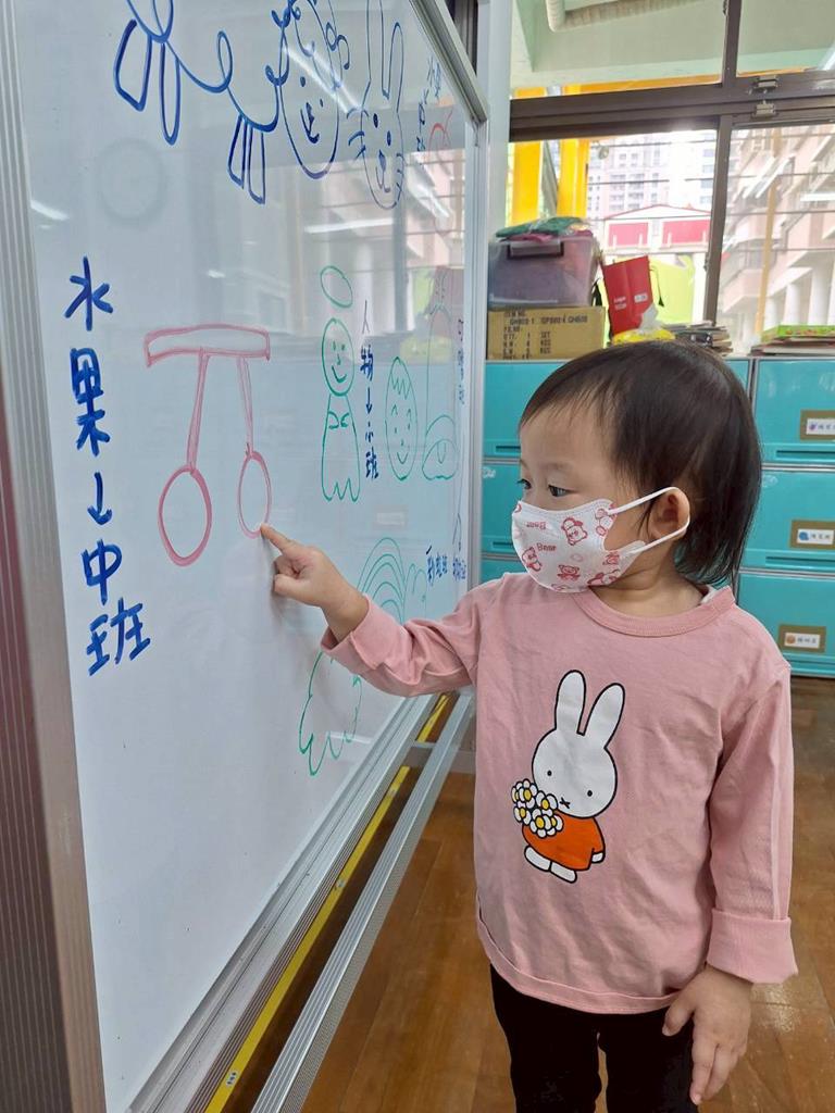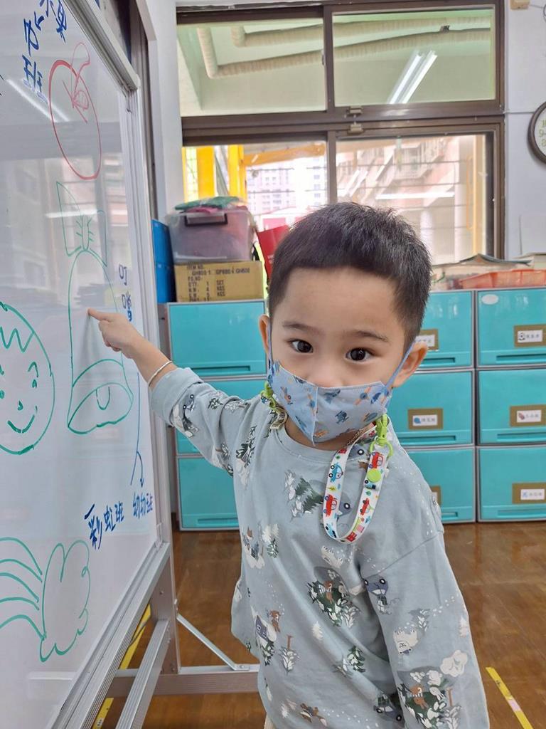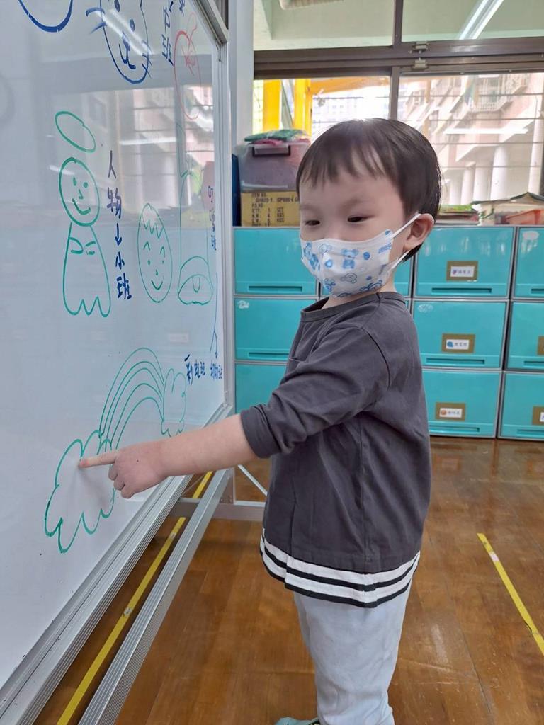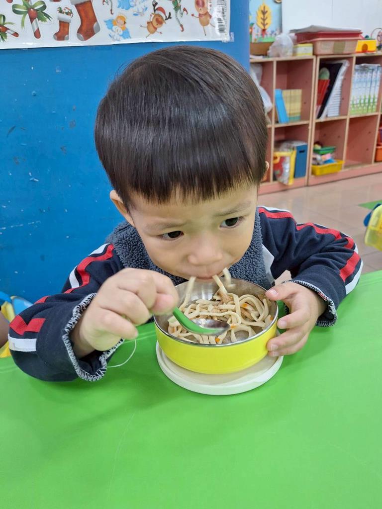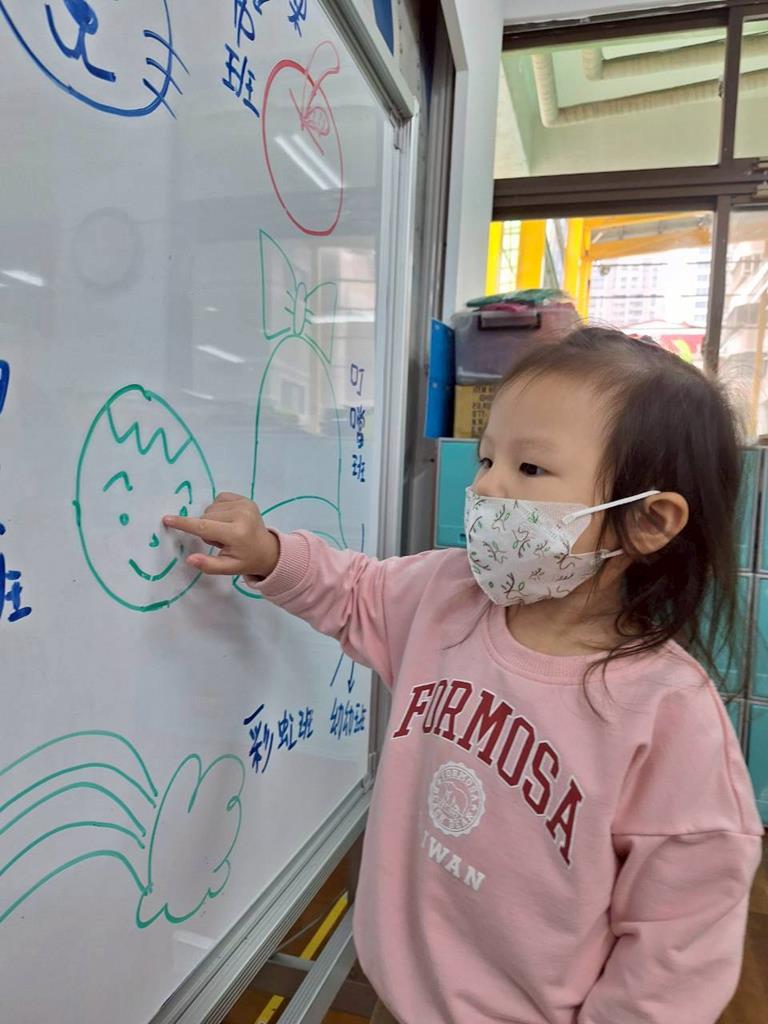 帶孩子觀察每個班級的圖案,並認識叮噹是甚麼圖案,也讓孩子幫叮噹的圖,塗上漂亮的顏色,老師在教孩子如何正確的用餐禮儀,椅子會做好,手會扶著碗嘴巴靠近碗,吃完會拿衛生紙先擦嘴巴再把碗擦乾淨,再將碗收進餐袋