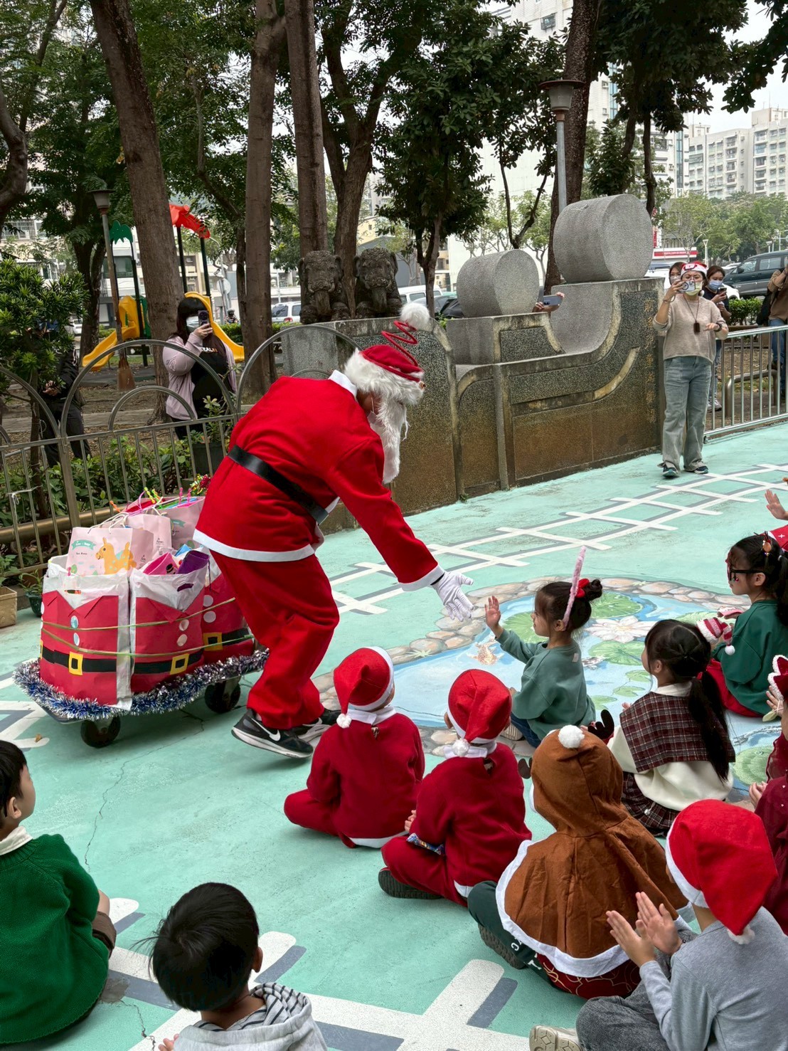 在聖誕節前一天,幼兒園為孩子們精心準備了一系列歡樂的聖誕活動:有趣的聖誕闖關遊戲、熱鬧的聖誕律動,還有聖誕老公公驚喜現身發送禮物,陪伴孩子們一起開心迎接聖誕節的到來。