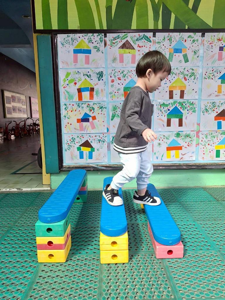 玩完玩具我會做好分類及分工收拾,我玩完拼圖會收拾,不吵架,一腳一階練習上下樓梯,也告訴孩子在教室裡玩的遊戲安全,步爬櫃子也不在教室裡奔跑、丟球