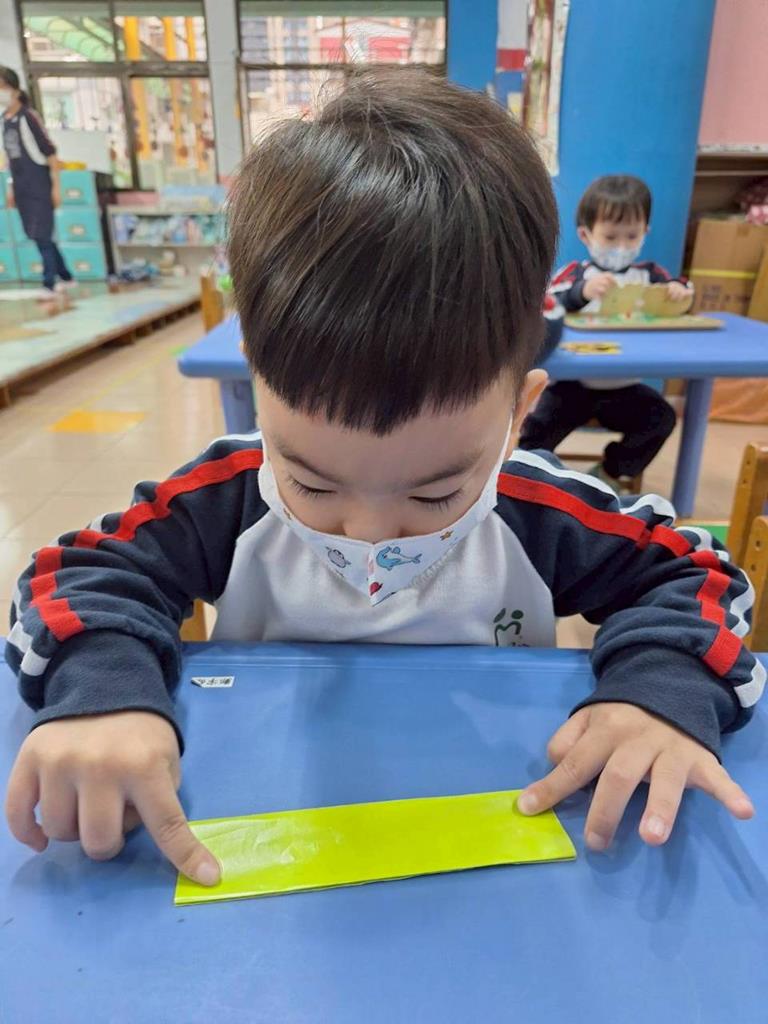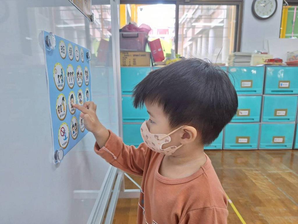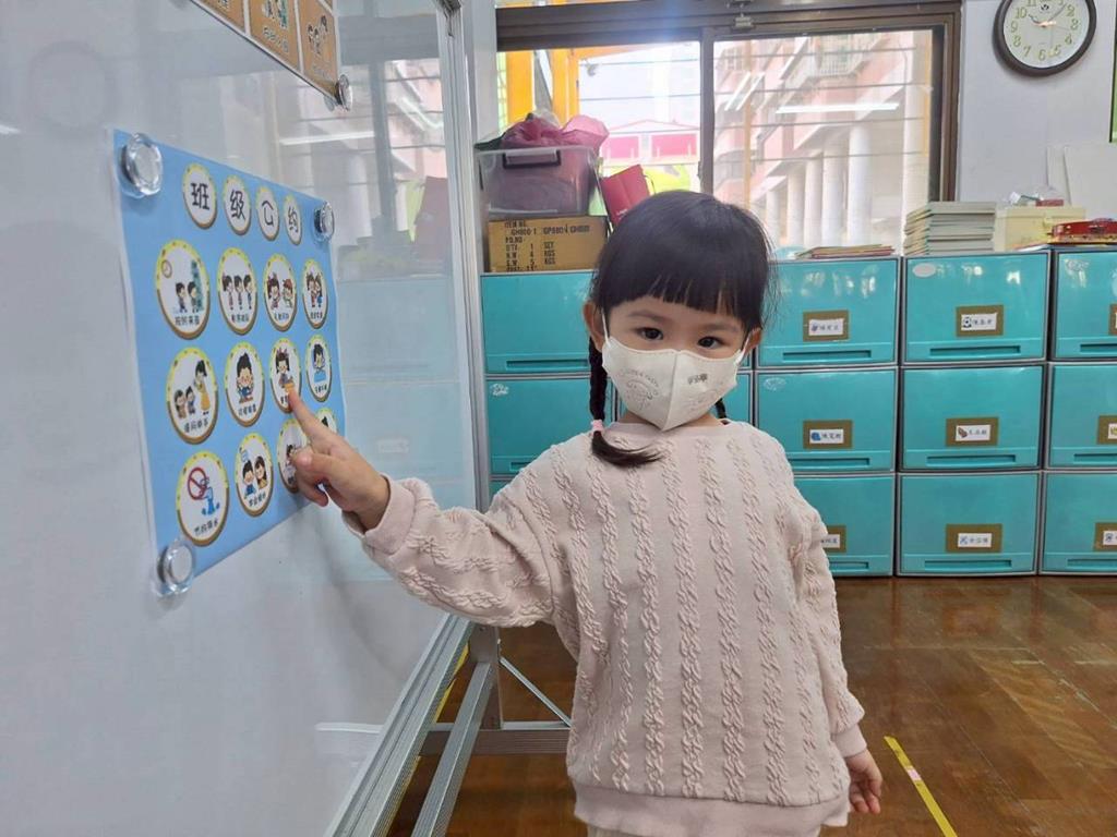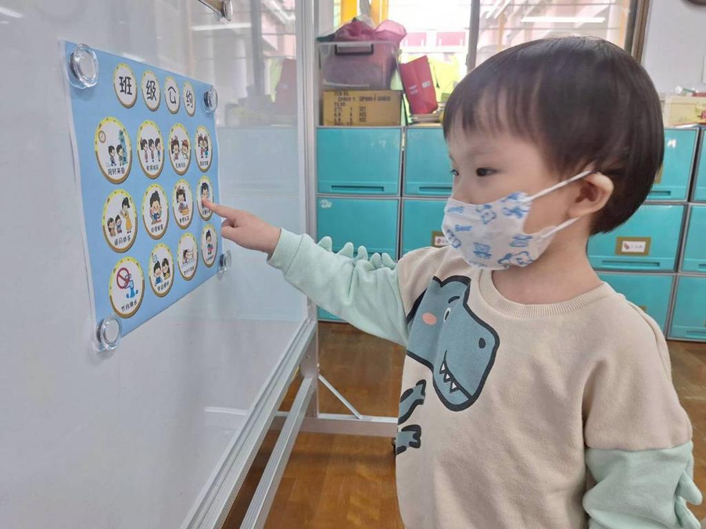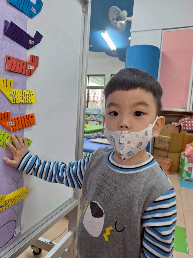 帶孩子認識甚麼是班規,也利用色紙摺小魚,將貼到班規海報上,也讓孩子指出會做到那些班規,在教孩子如何正確的刷牙