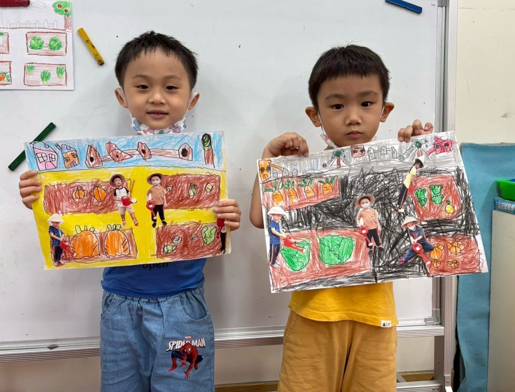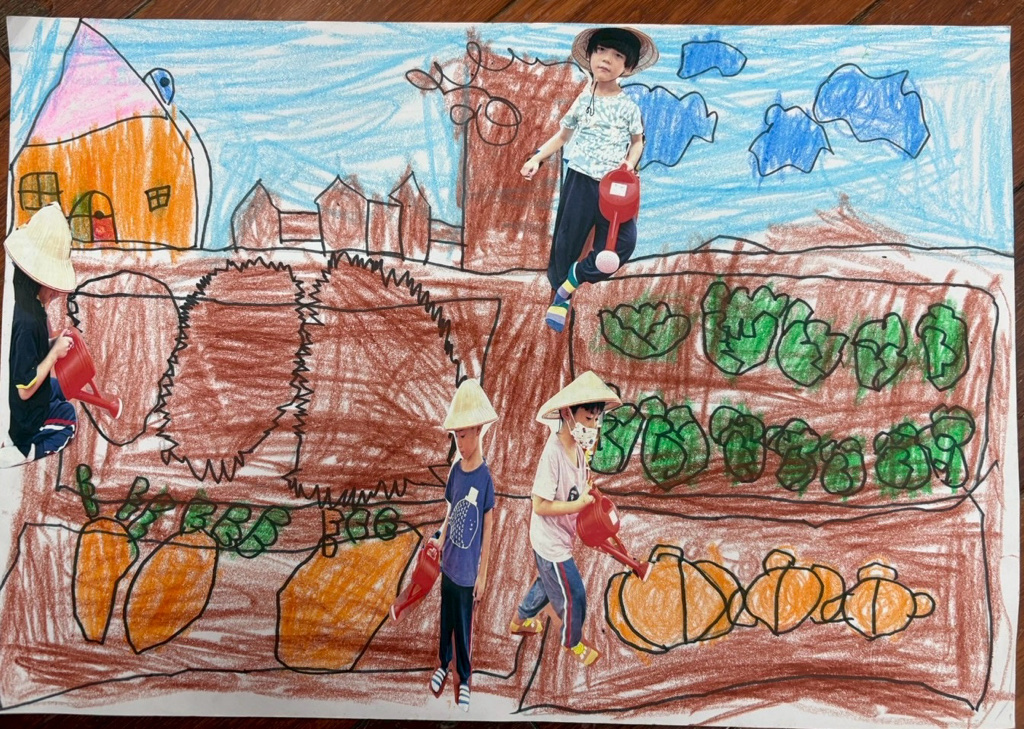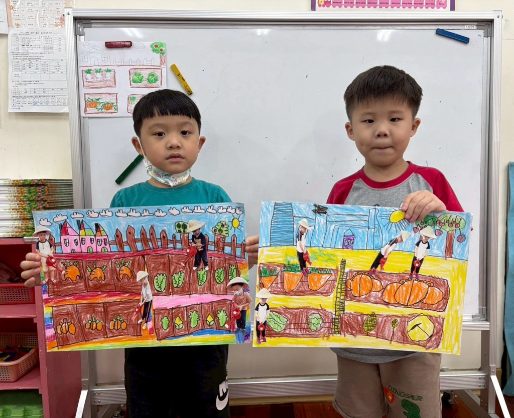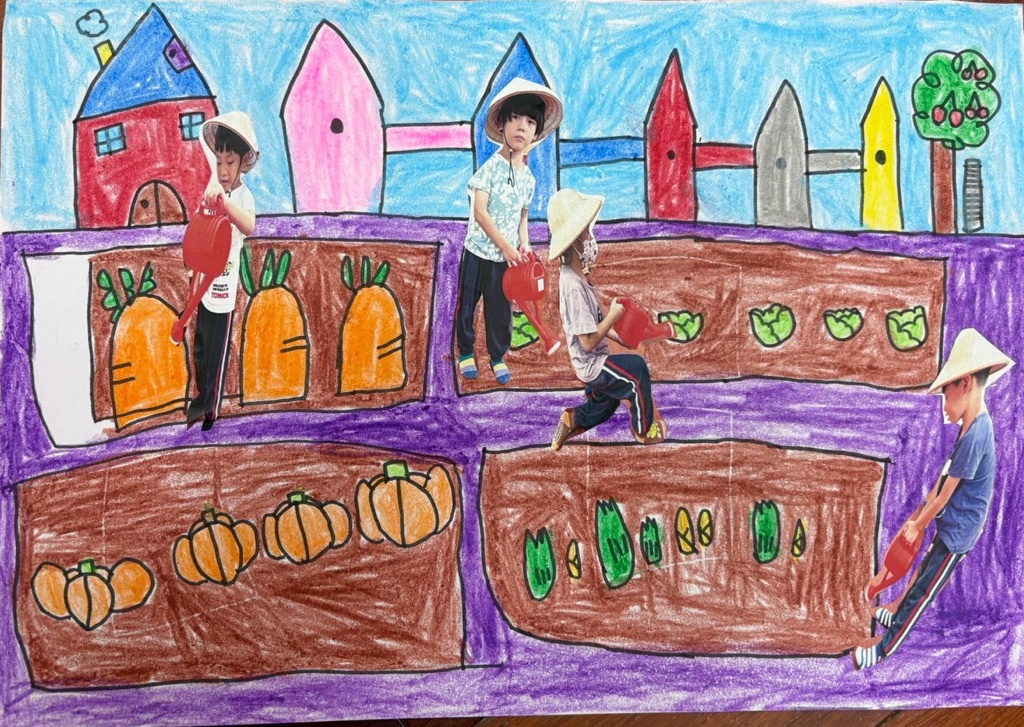 藝術創作:我的菜園~仔細看!我們一起幫菜園澆水喔!