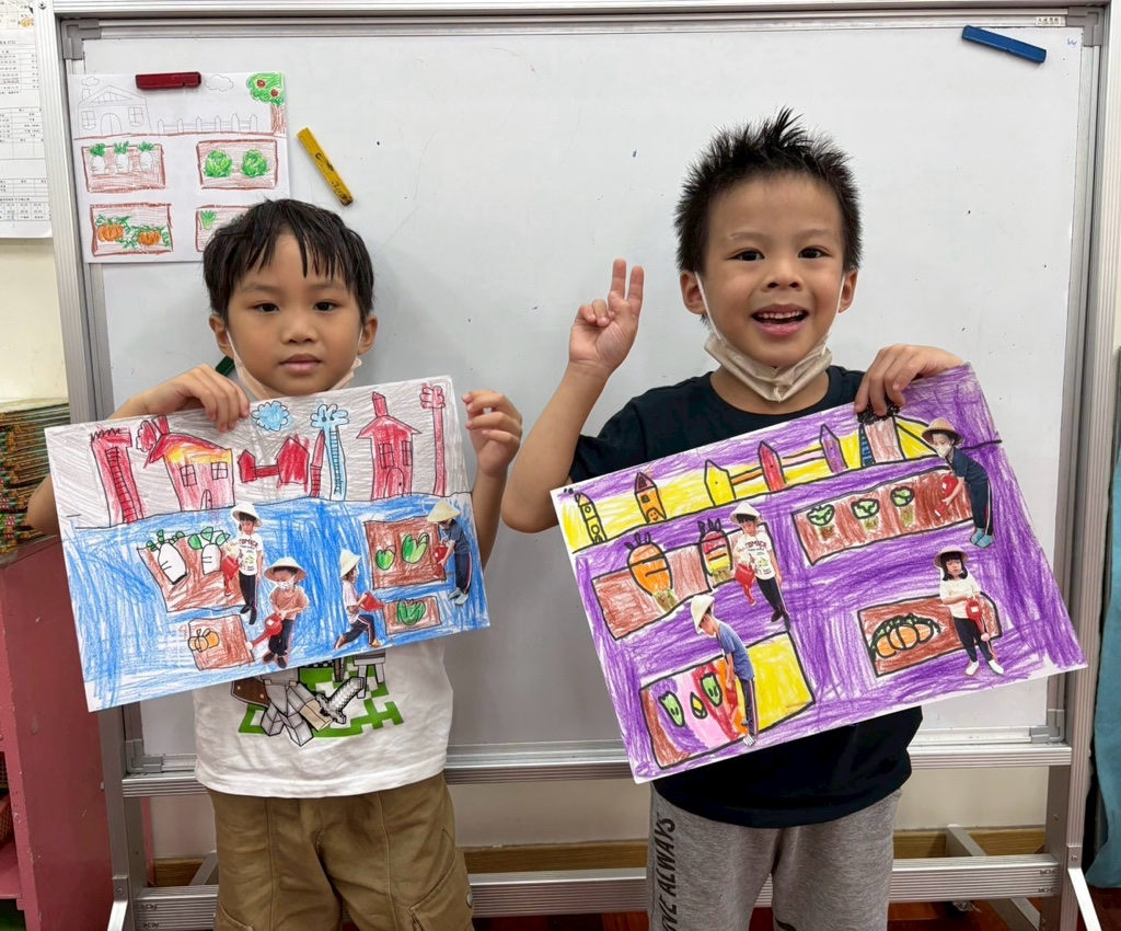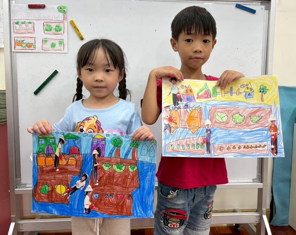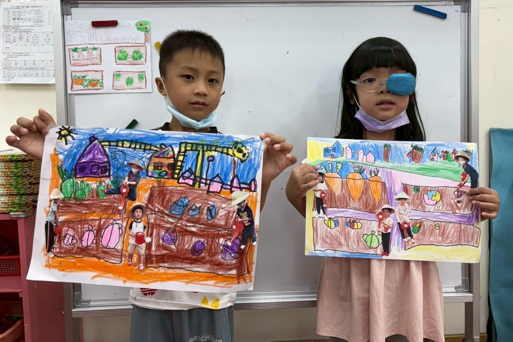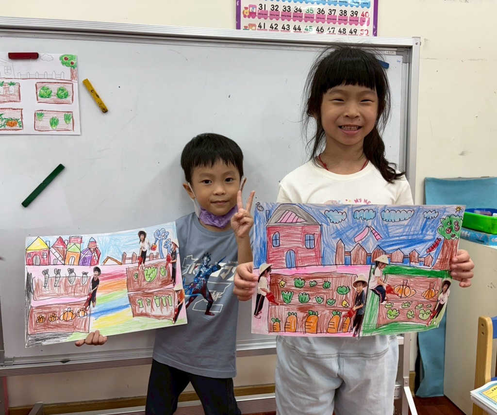 藝術創作:我的菜園~仔細看!我們一起幫菜園澆水喔!
