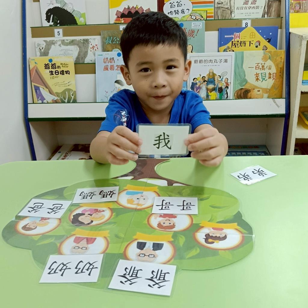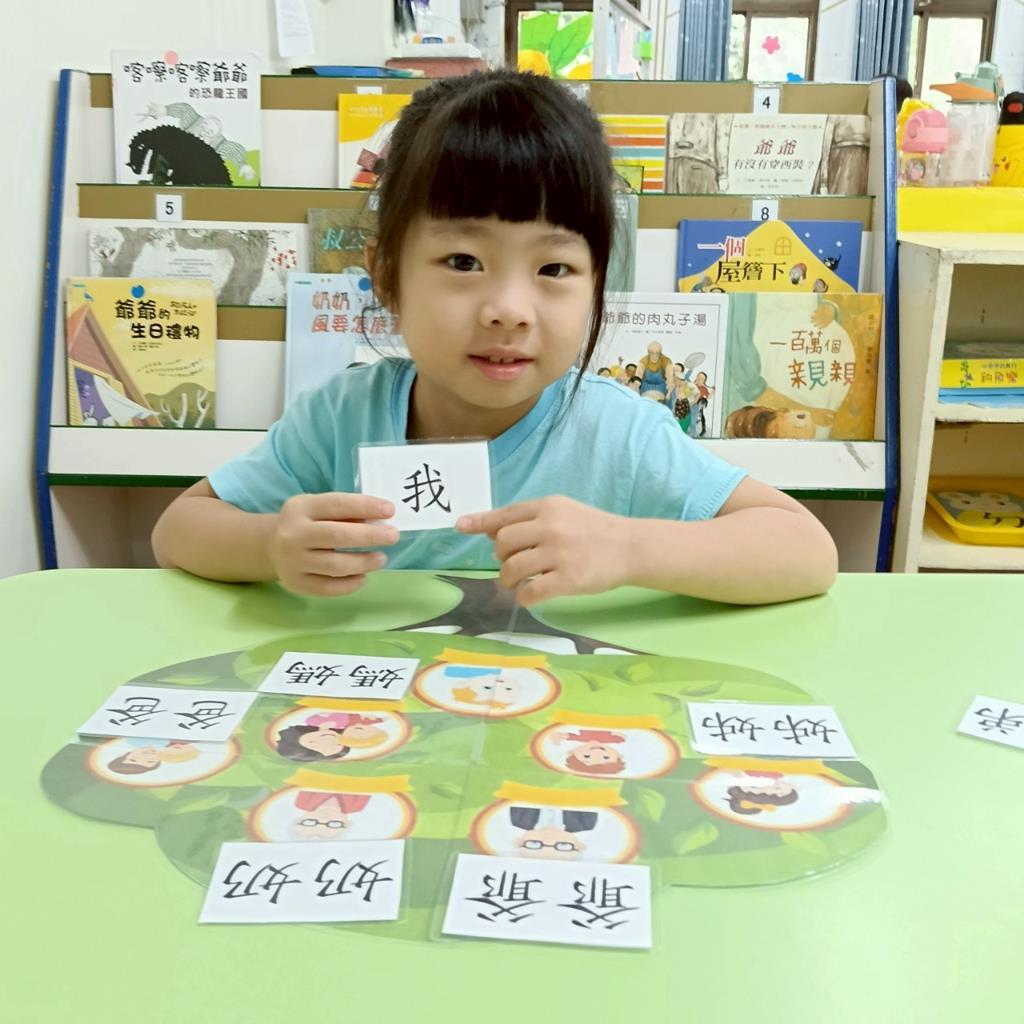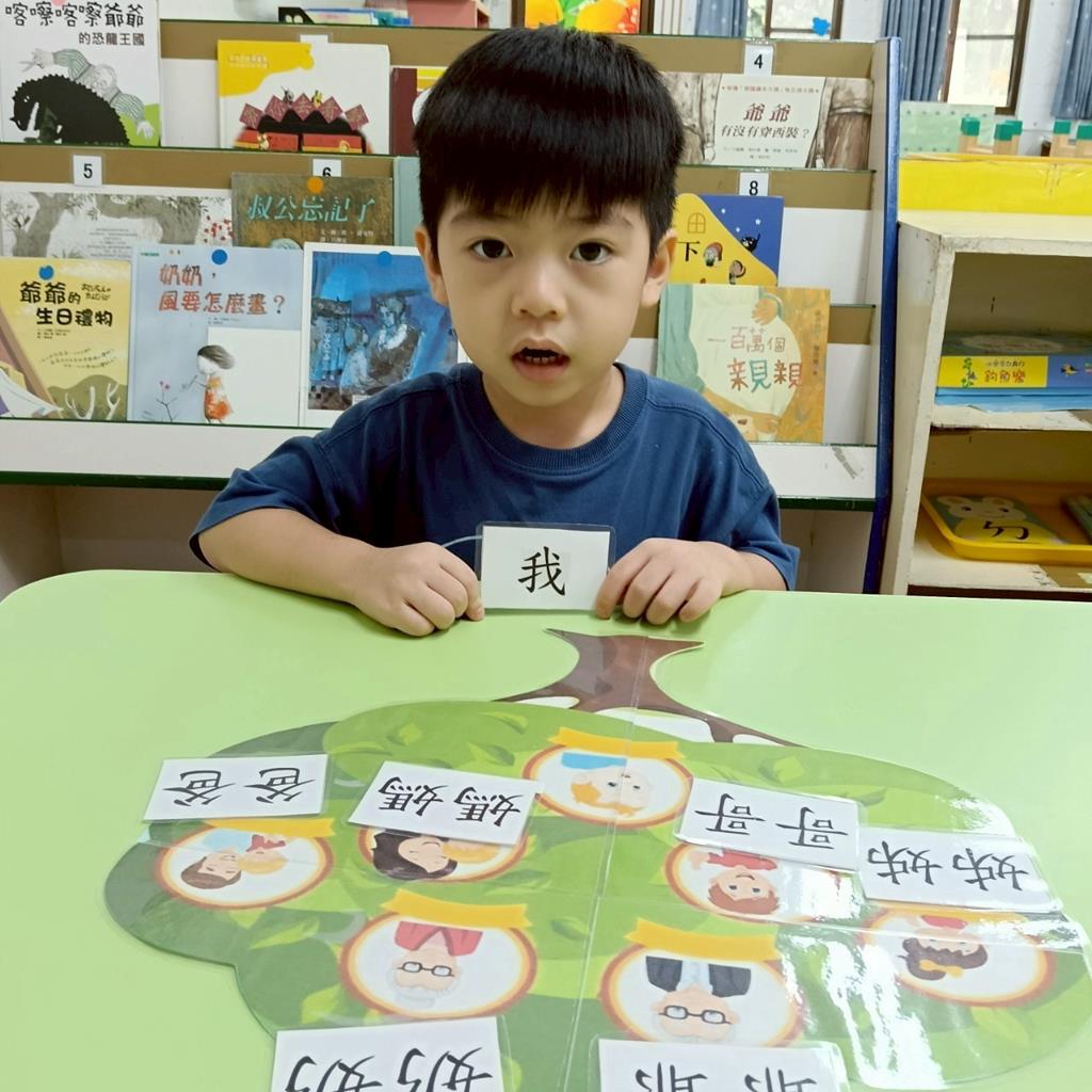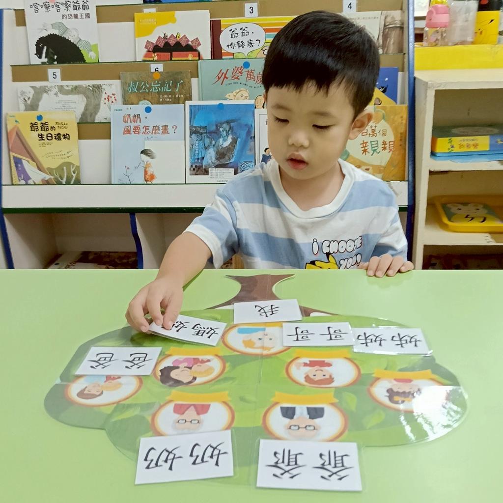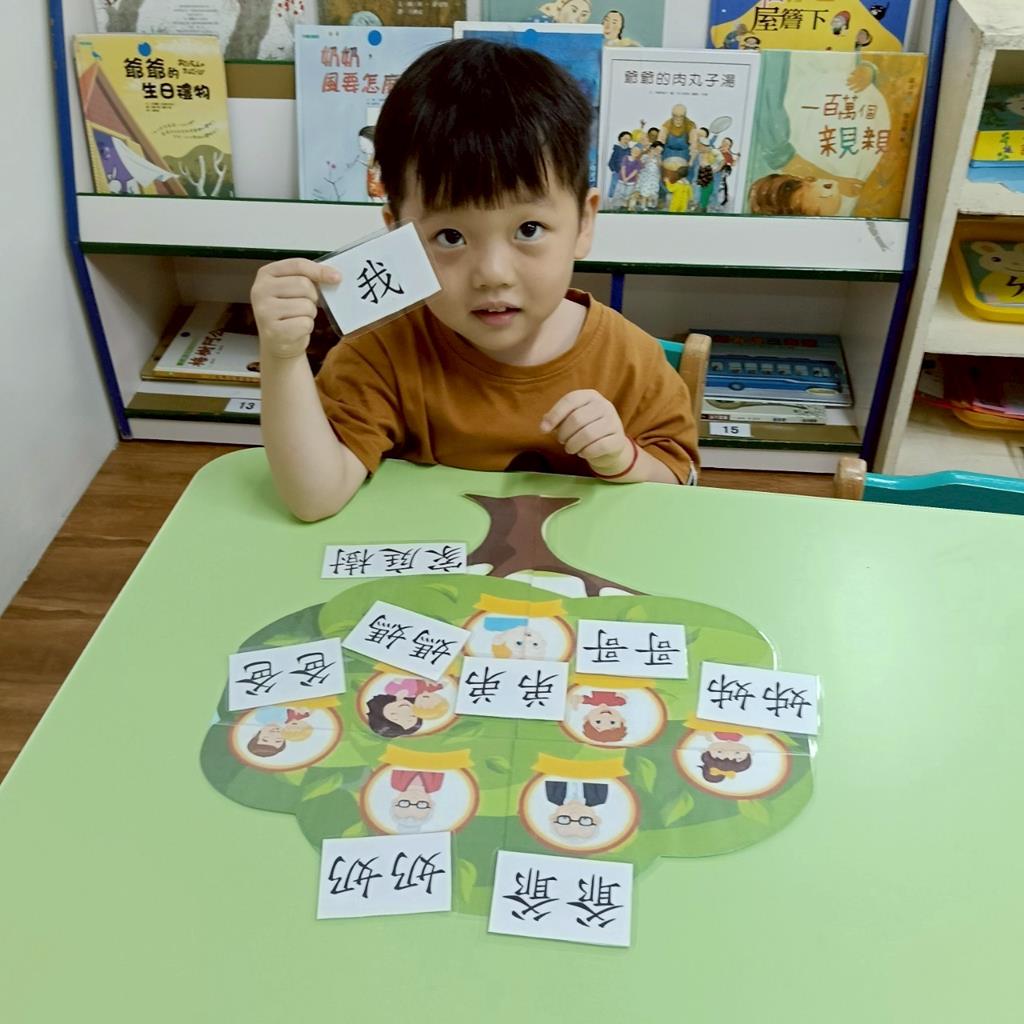 我拿著家人卡,念出名字,說:「這是我的爸爸(媽媽)!」 看著圖卡學家人稱呼,好好玩!