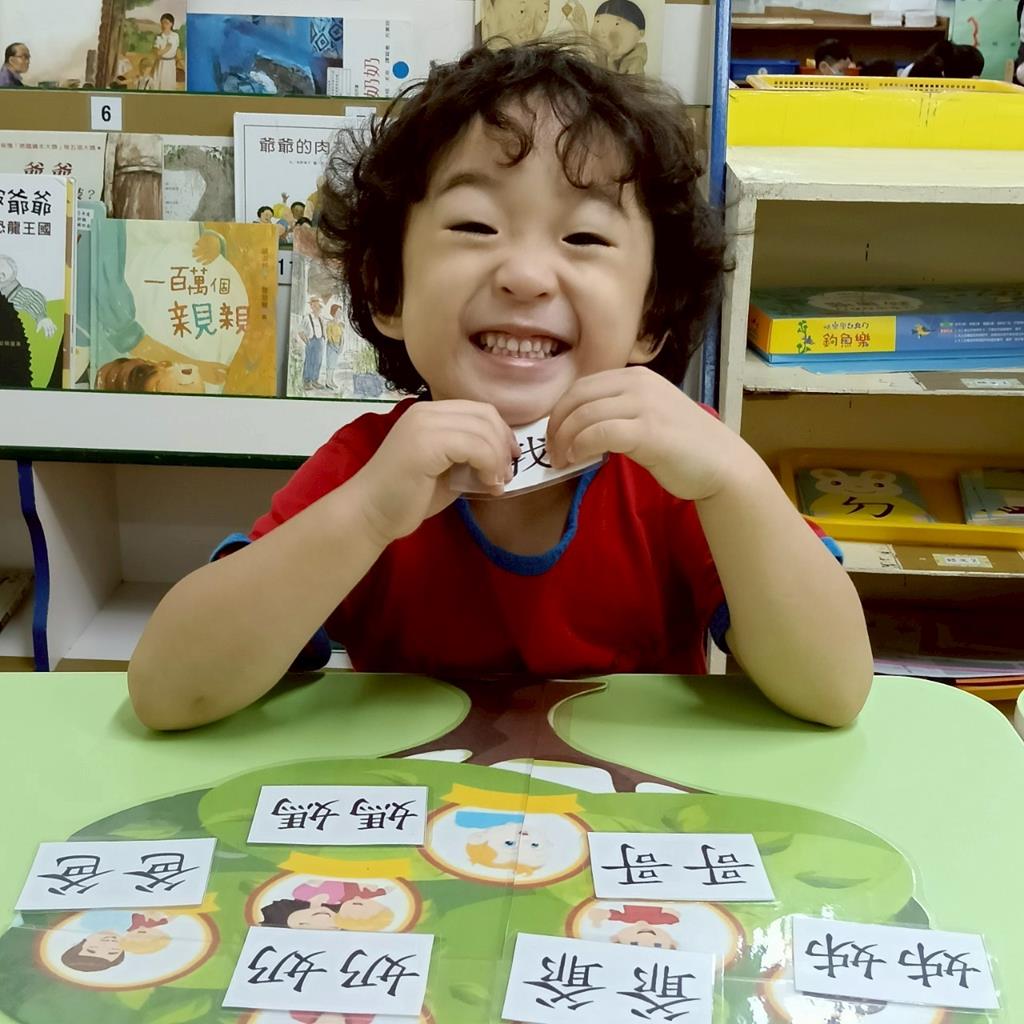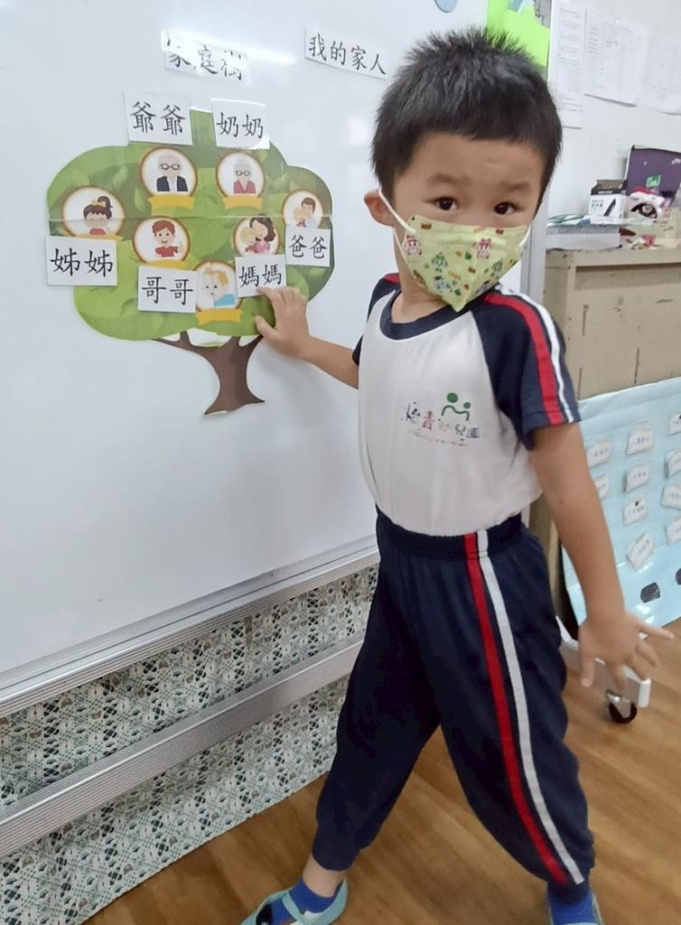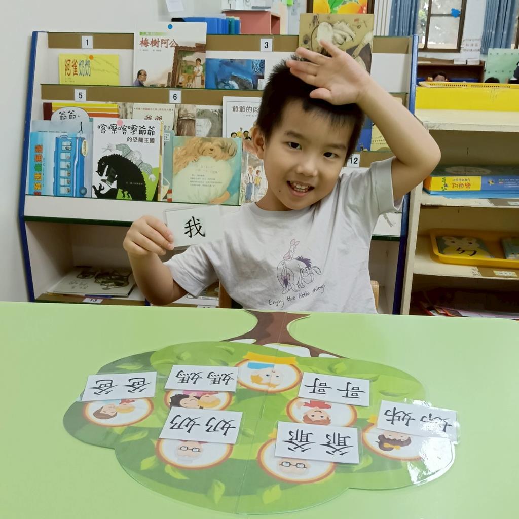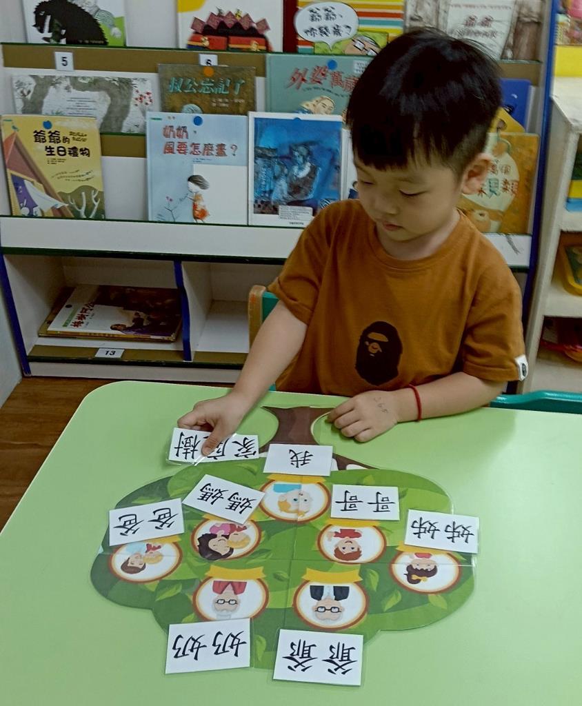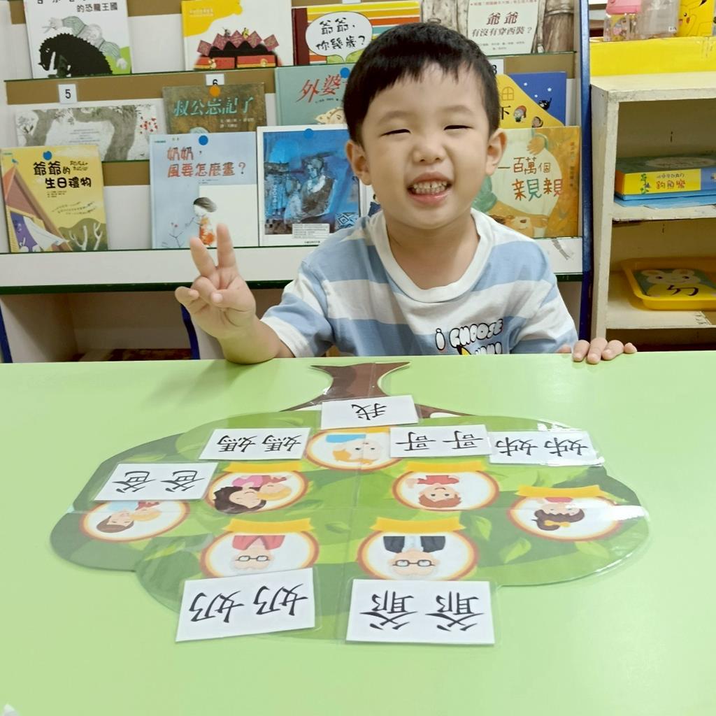 我拿著家人卡,念出名字,說:「這是我的爸爸(媽媽)!」 看著圖卡學家人稱呼,好好玩!