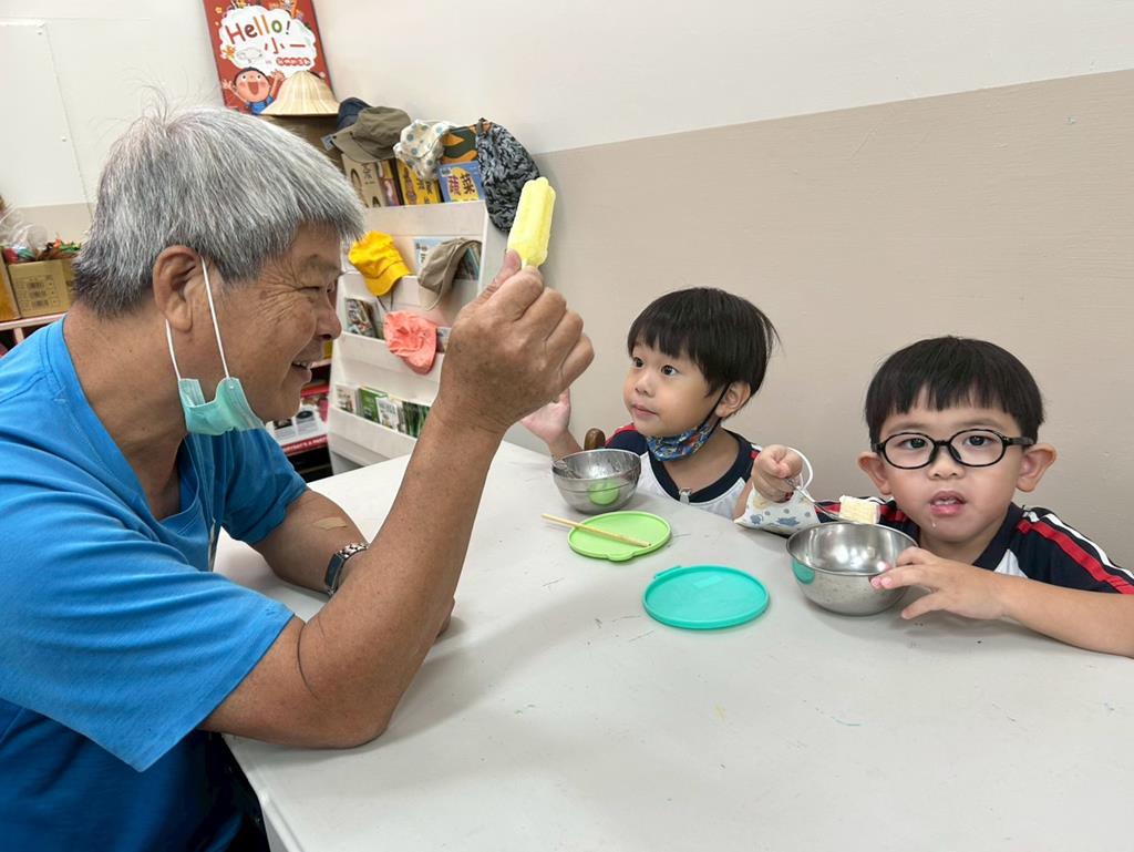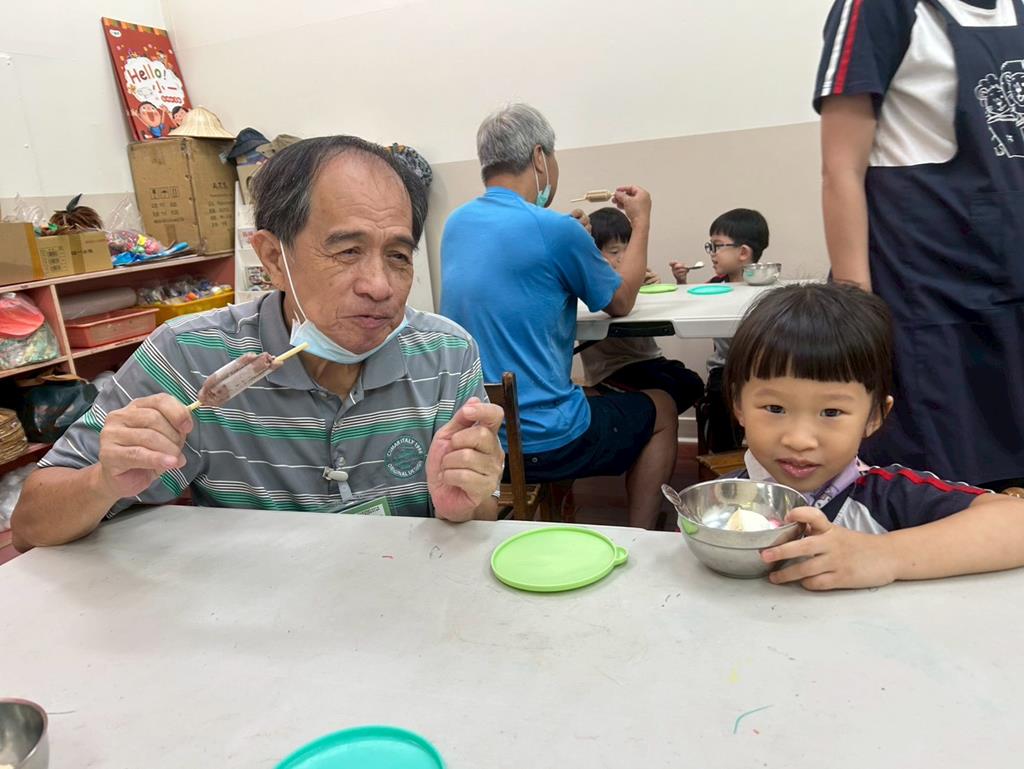 和爺爺奶奶一起拼拼圖、聽繪本、吃枝仔冰跟自創繪本,枝仔冰好好吃,是大家的古早味回憶!