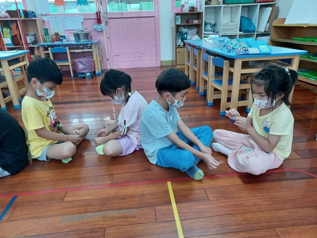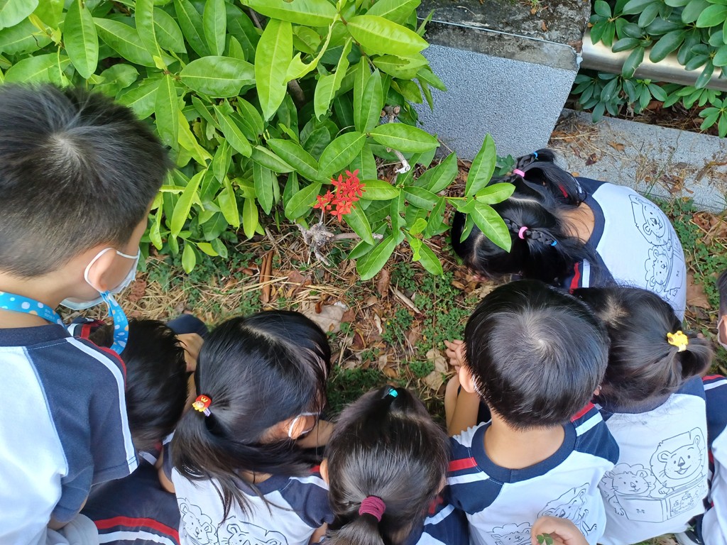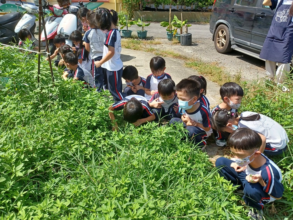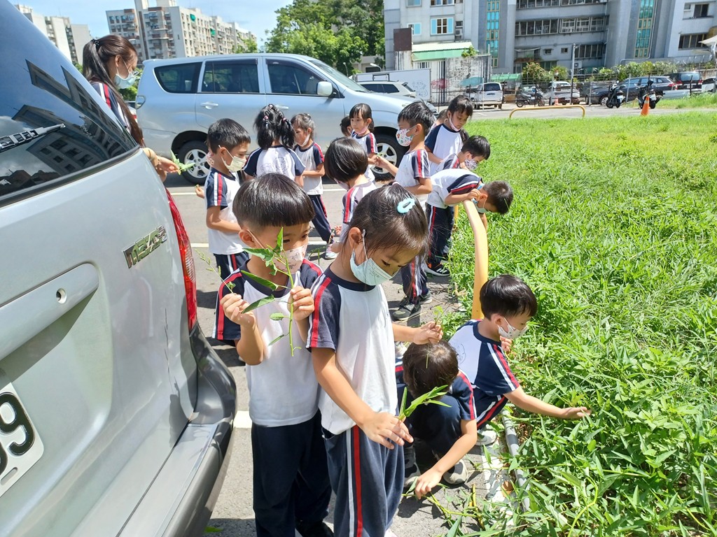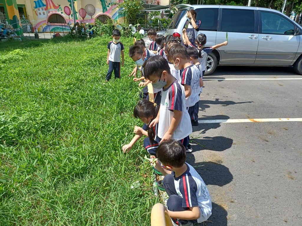 帶孩子去撿拾校園邊的花花草草,撿回來後兩人一組,發揮創意玩〝花草遊戲〞。
