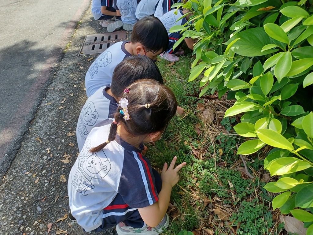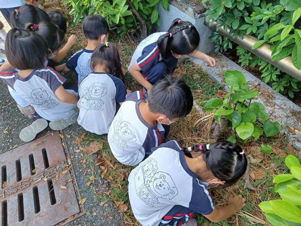 帶孩子觀察校園邊的花花草草,孩子發現一些與主題本內的圖像和故事內容相同的植物,於是撿拾回教室和書裡做對應討論,有:幸運草、兩耳草…等等。