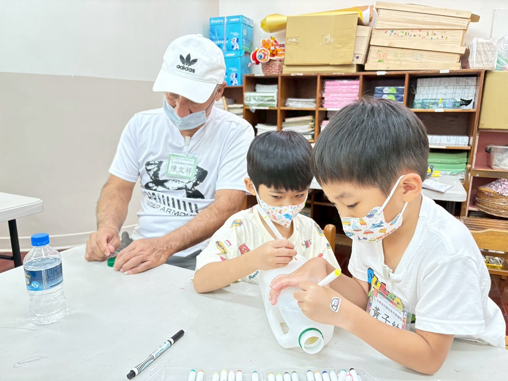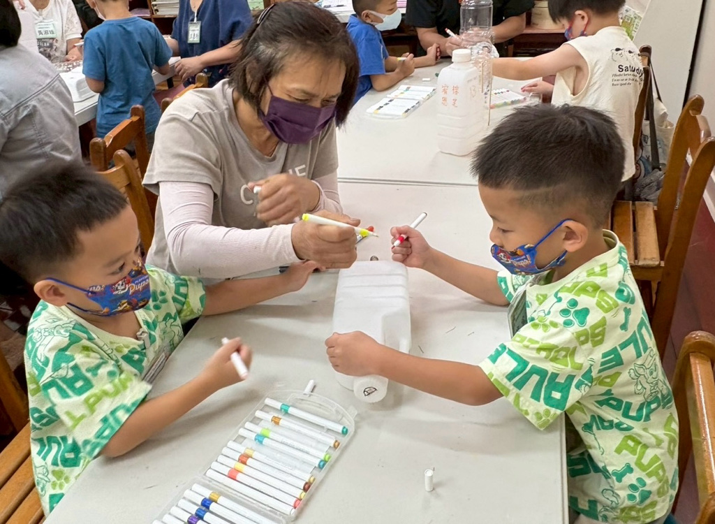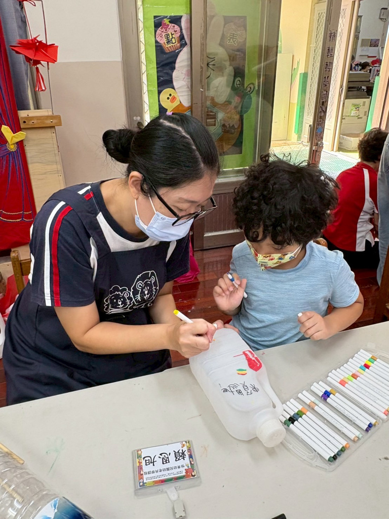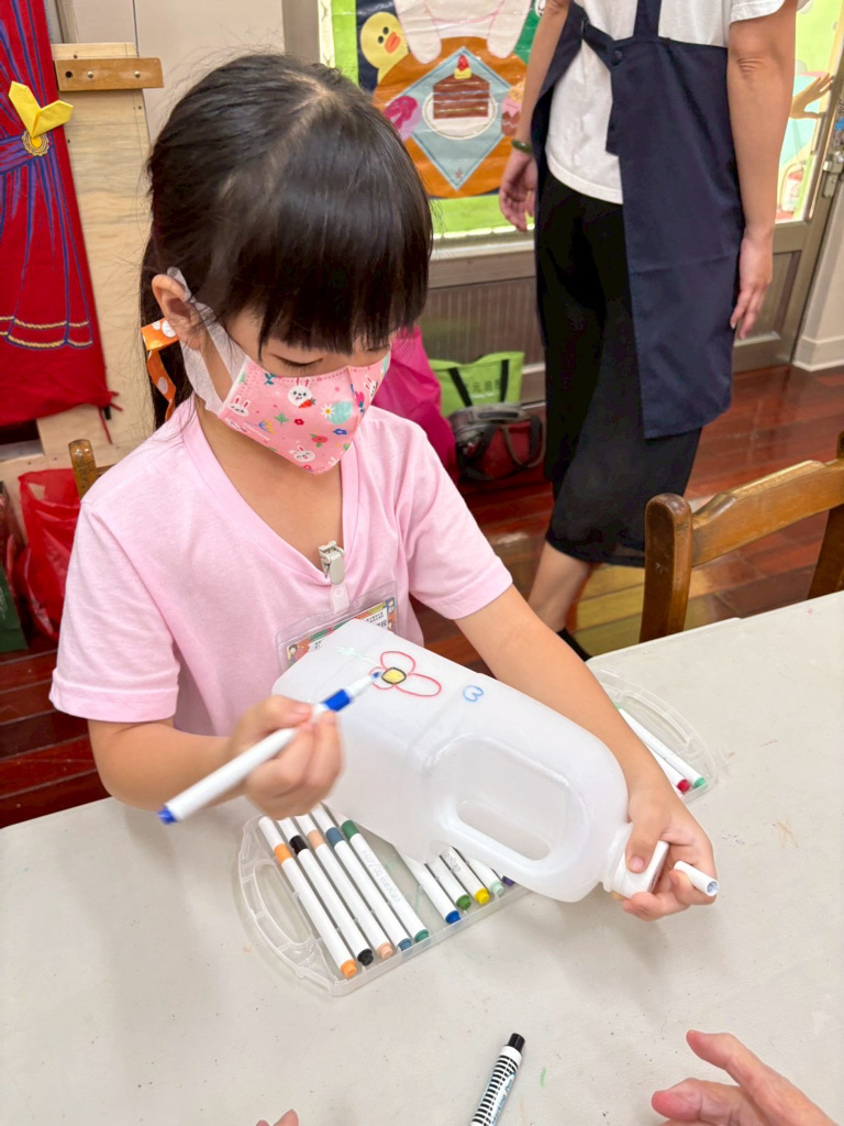 製作灑水器~小朋友幫忙在瓶身畫圖