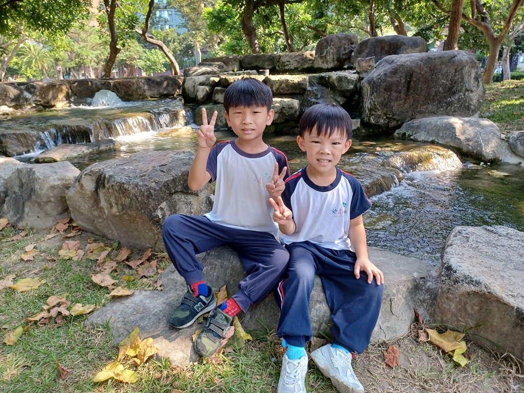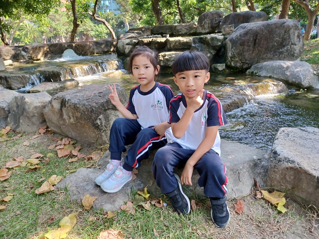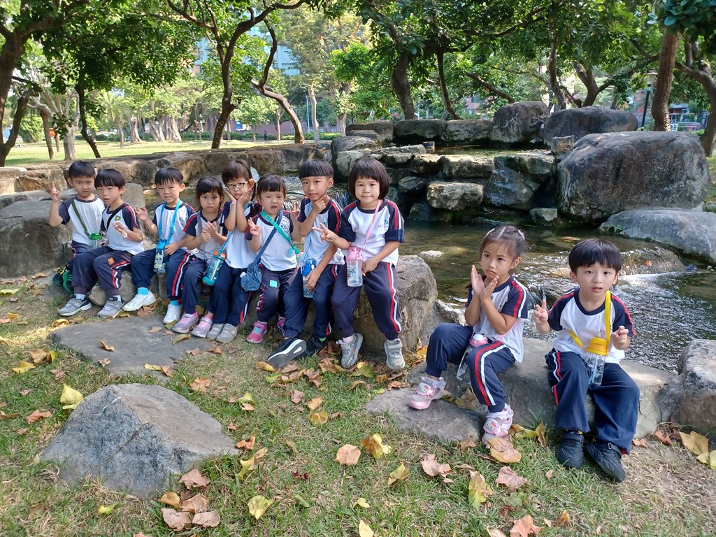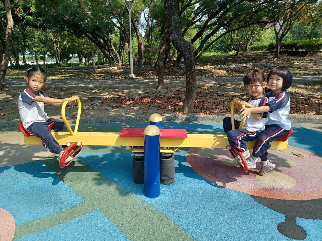 行前準備與安全叮嚀後,搭娃娃車去期待許久的原生植物園,欣賞戶外景物,聽大自然的聲音,有:動物與昆蟲叫聲、水流聲,在大草原奔跑,玩遊樂器材,好玩極了!