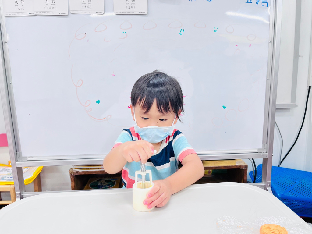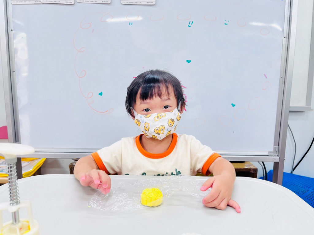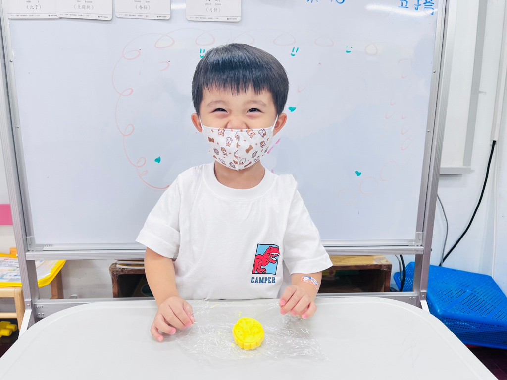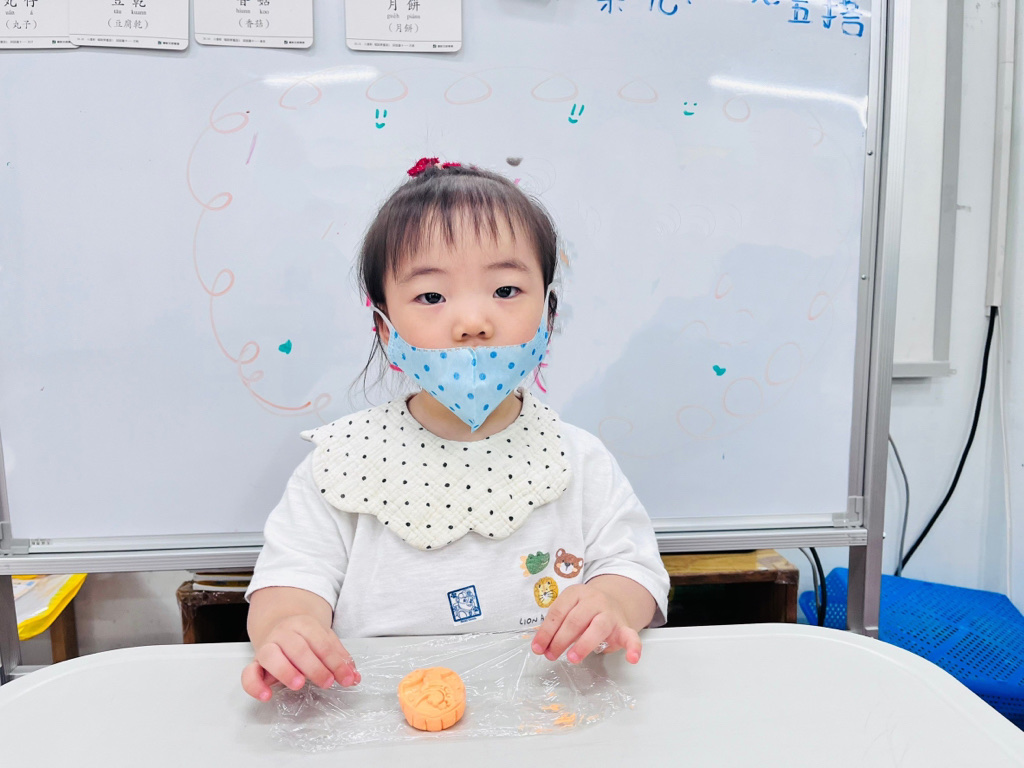 寶貝們正在運用輕黏土製作中秋月餅 哇~寶貝們都好厲害