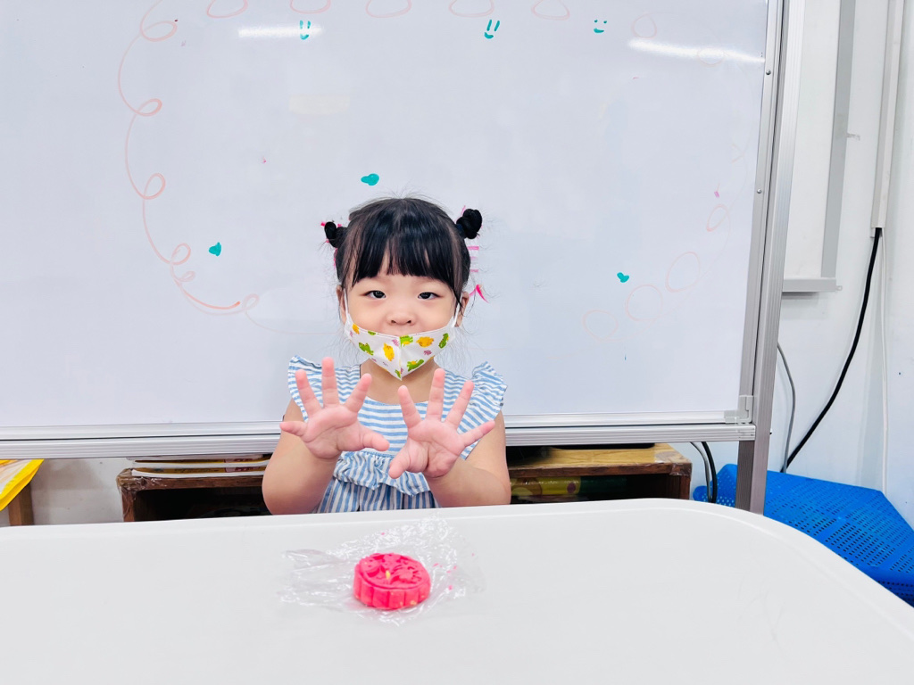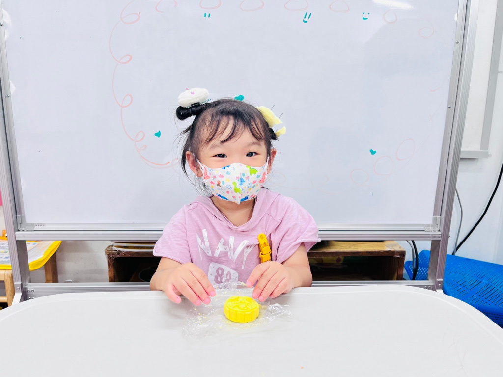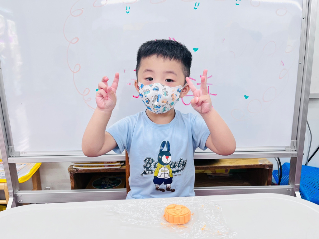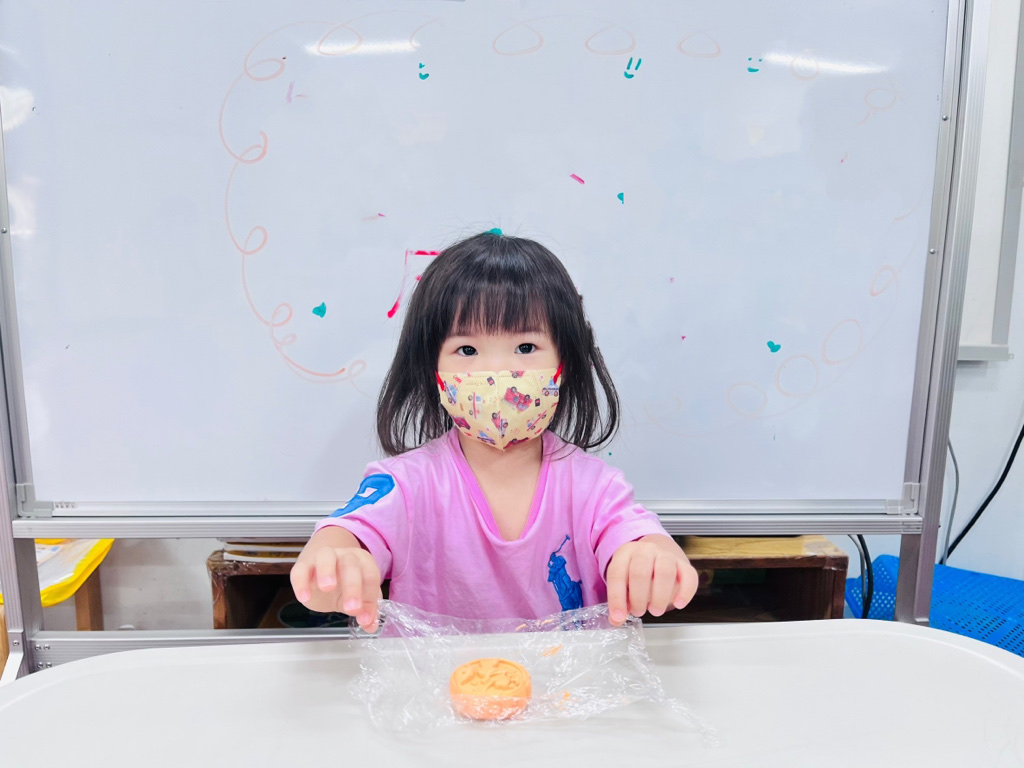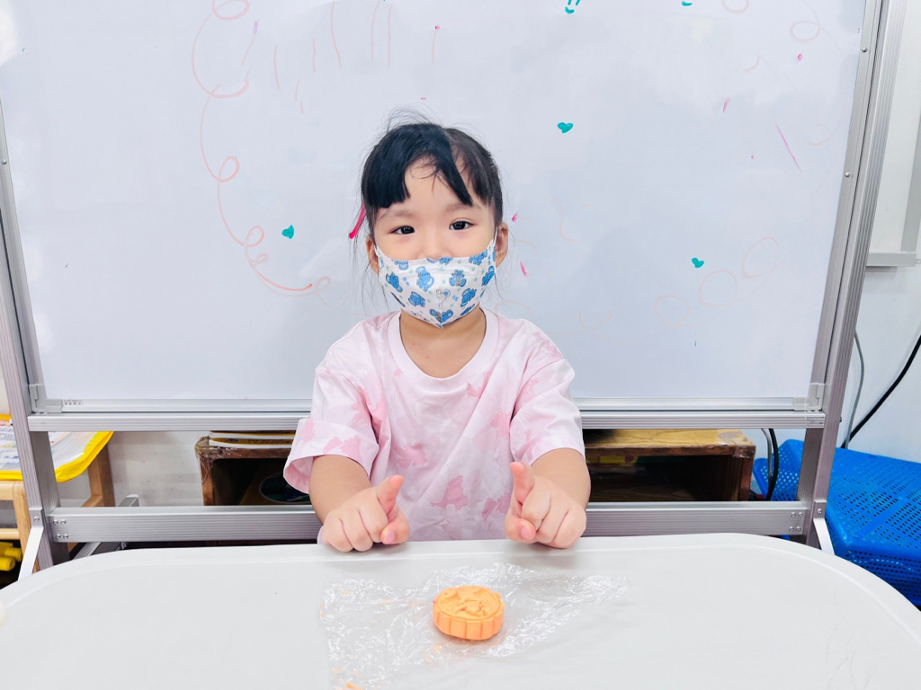 寶貝們正在運用輕黏土製作中秋月餅 哇~寶貝們都好厲害