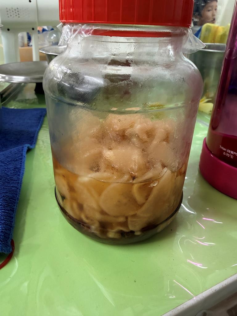 裝進有醬油、梅子、水、醋等調味的罐子開始醃製