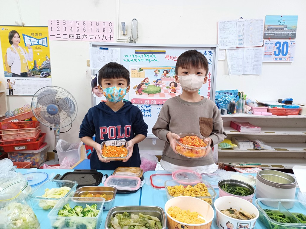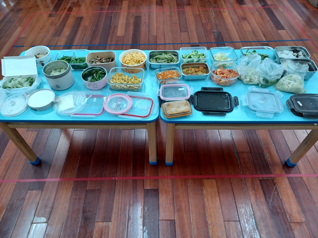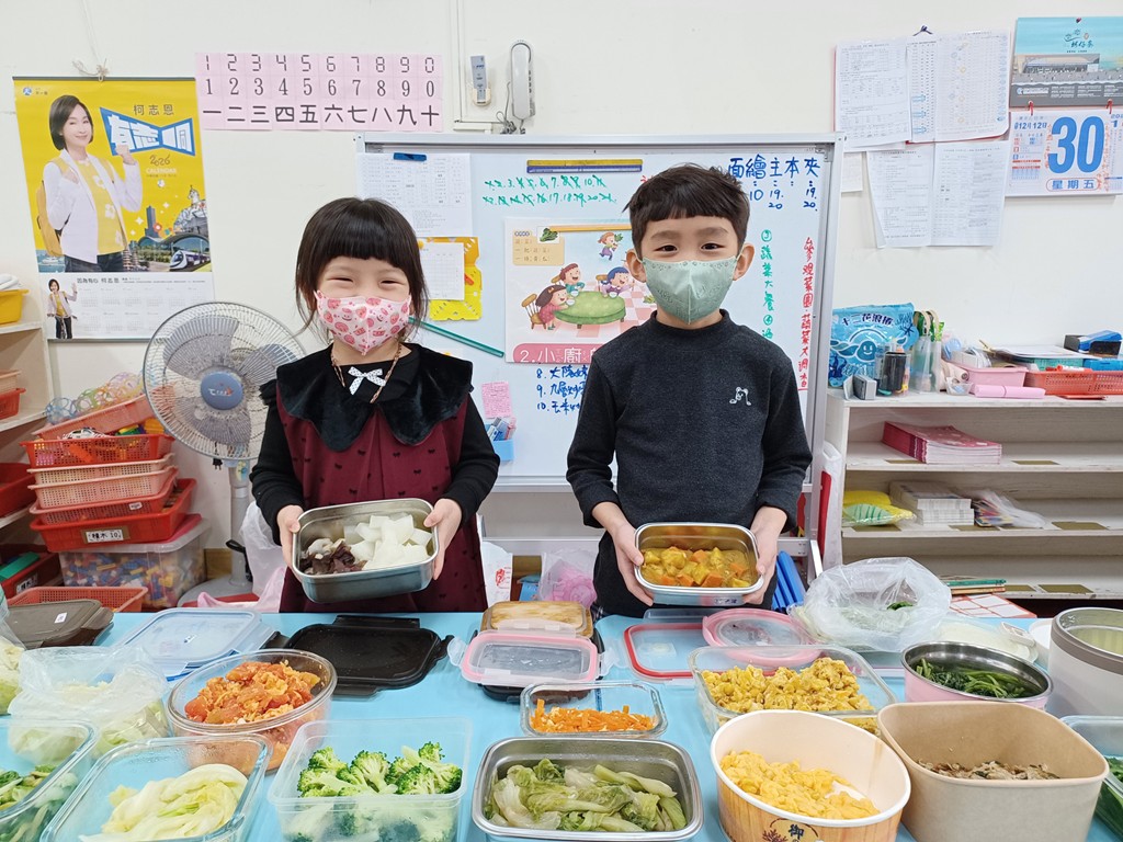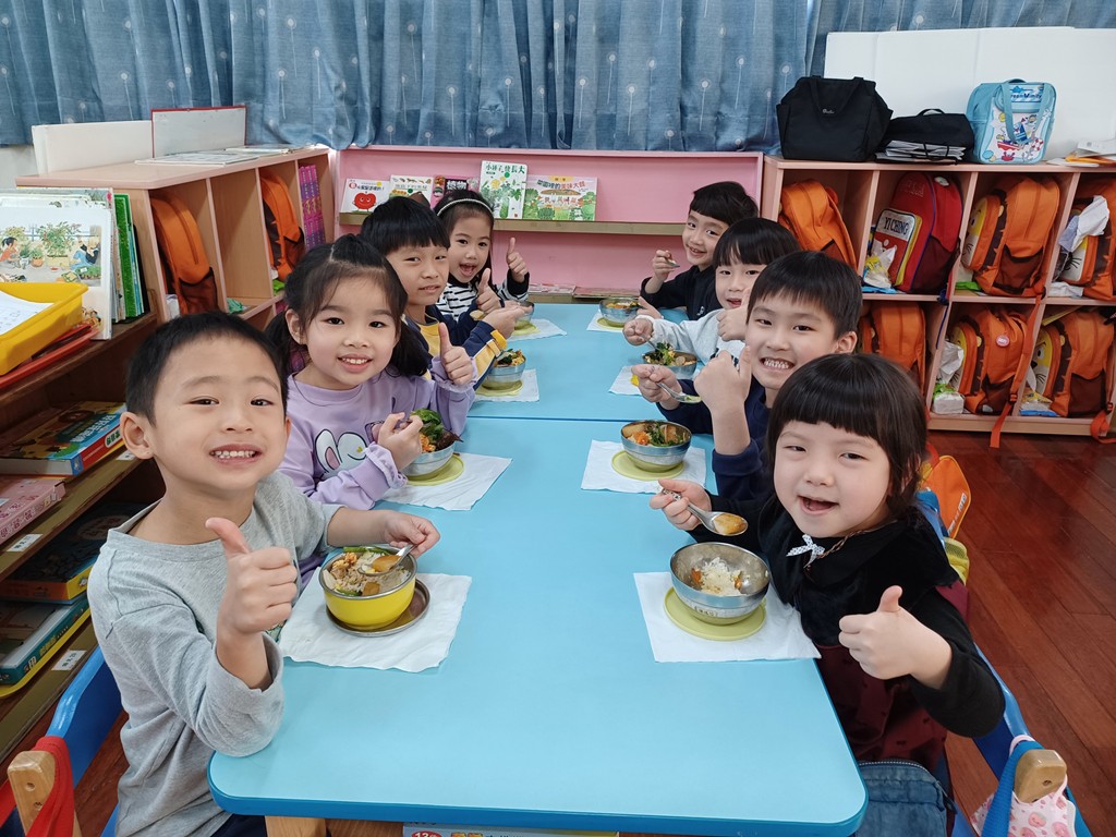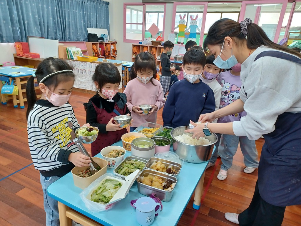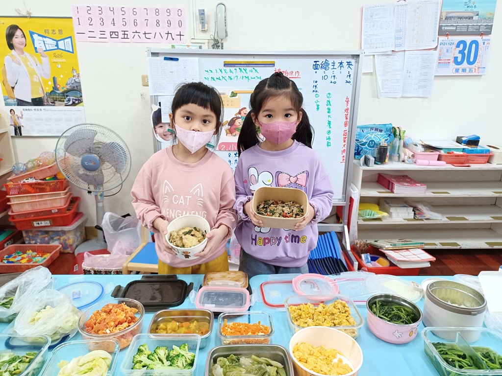 主題進行至尾聲,孩子想要品嚐〝蔬菜大餐〞,於是討論後,每人從家裡帶一道蔬菜料理來一起享用。希望透過活動的進行,讓孩子願意品嚐各種蔬菜的口感與味道,進而愛上吃蔬菜,知道食物得來不易。