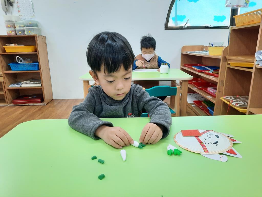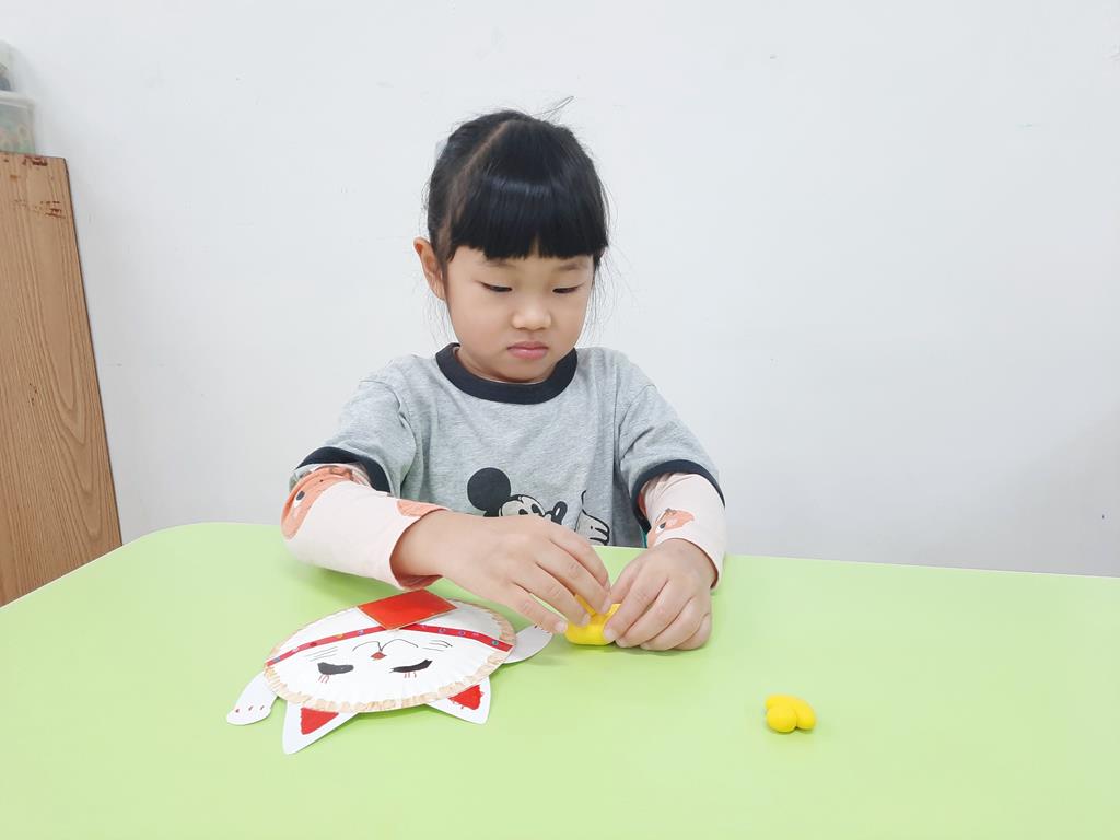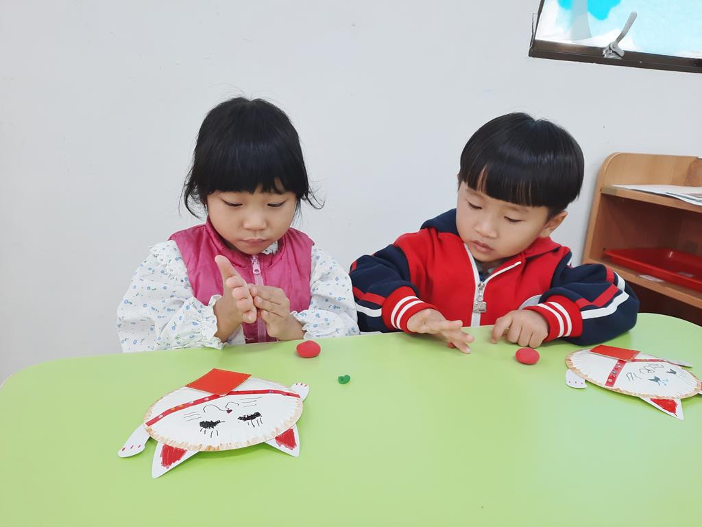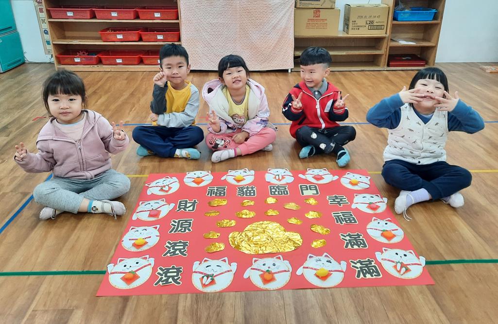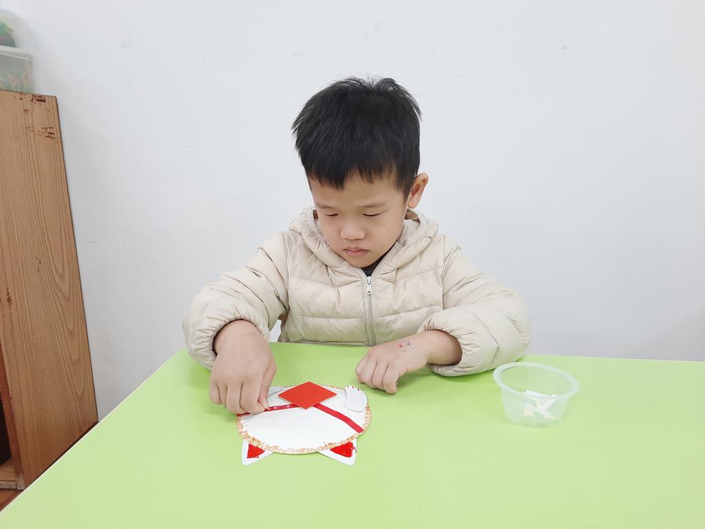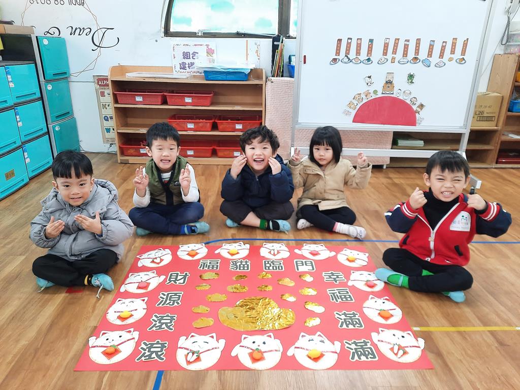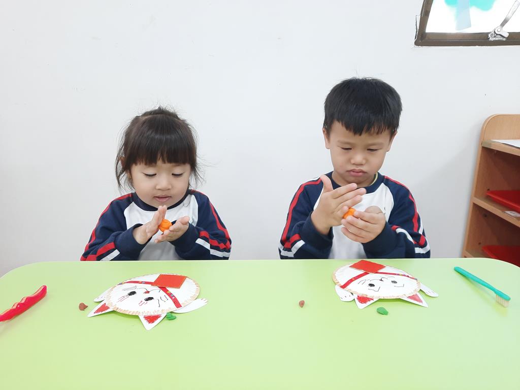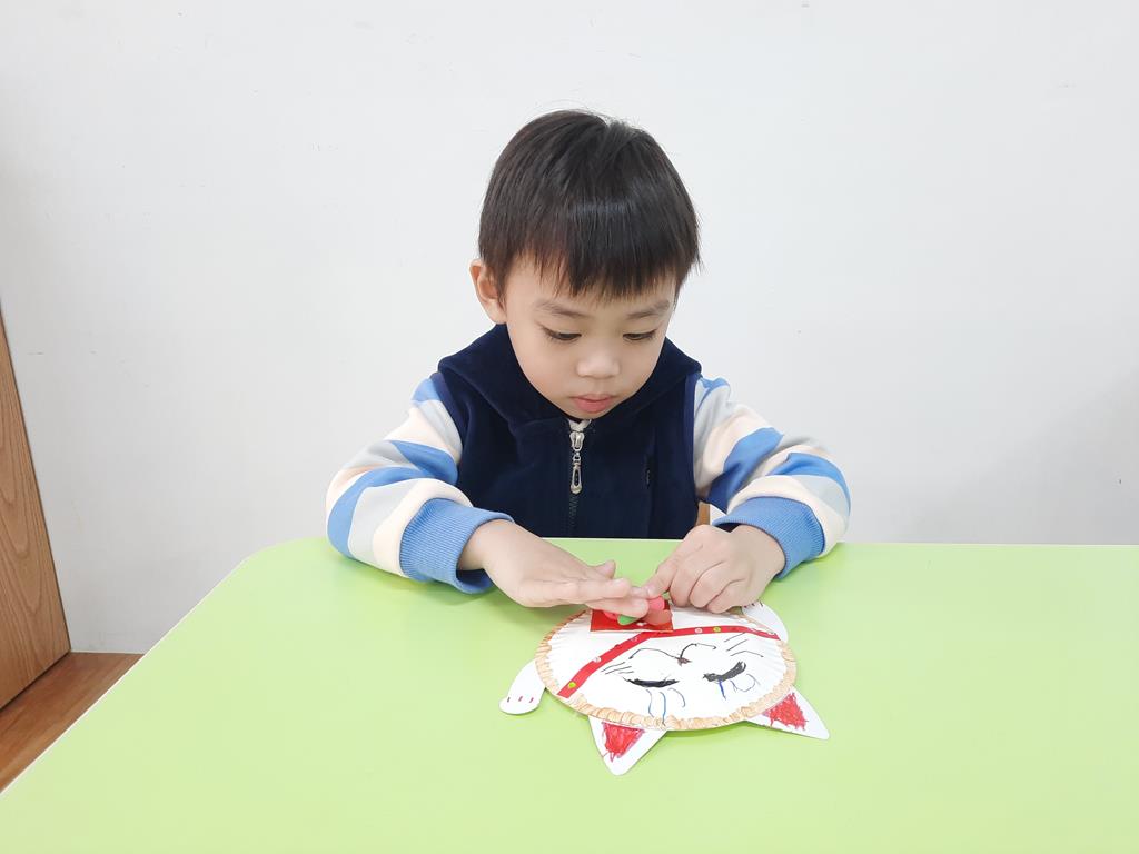 我們的過年表演歌曲是招財貓,所以就用紙盤來製作招財貓過年海報。