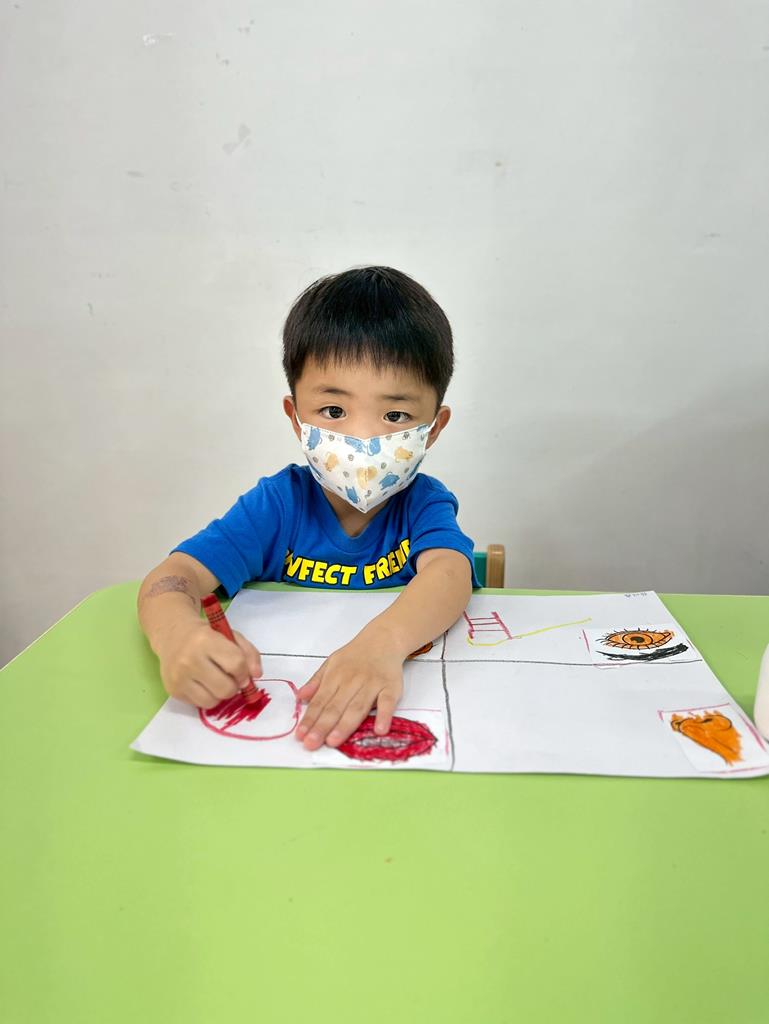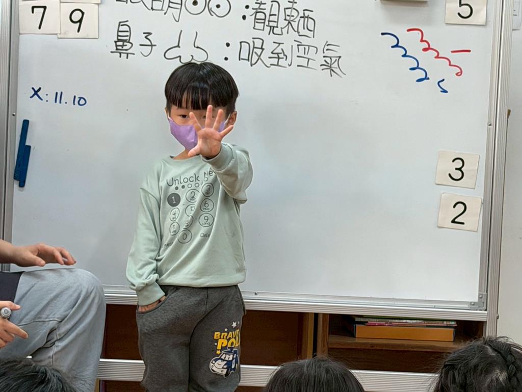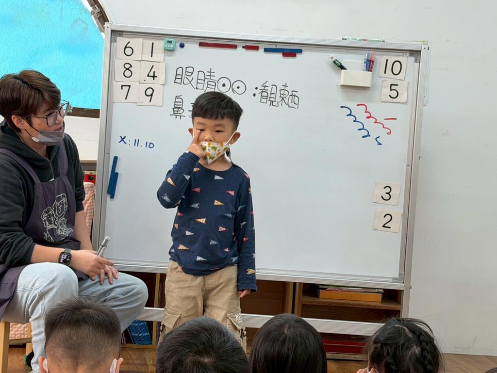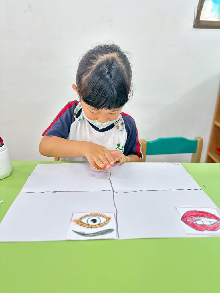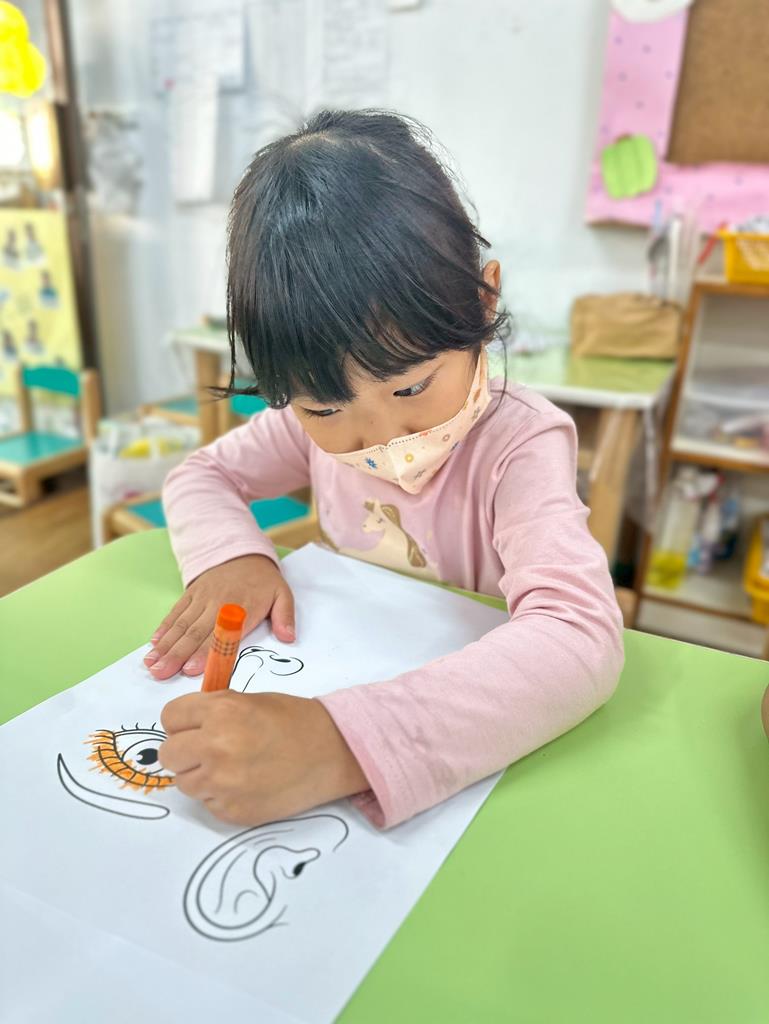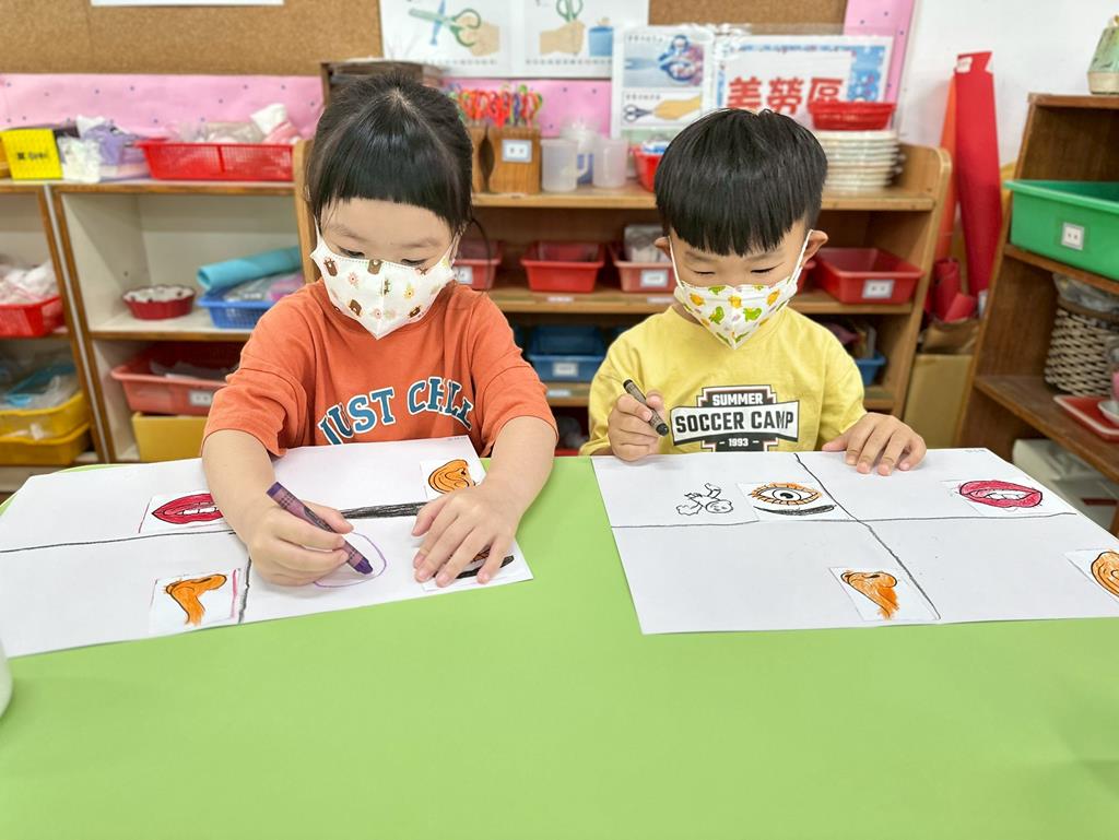 我們將眼睛看、鼻子聞、嘴巴說、耳朵聽到的畫下來