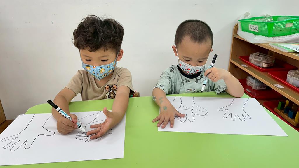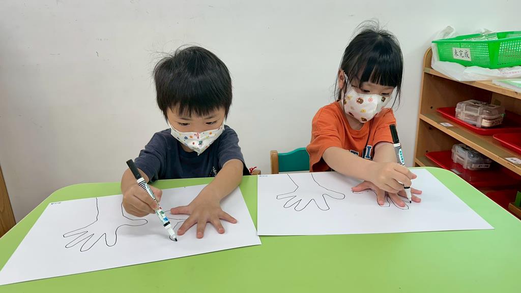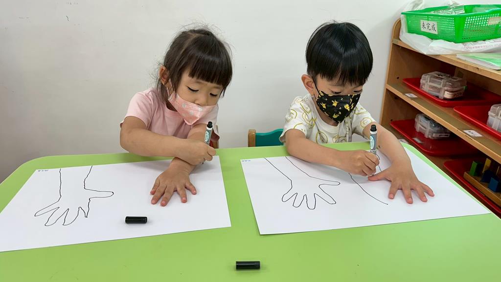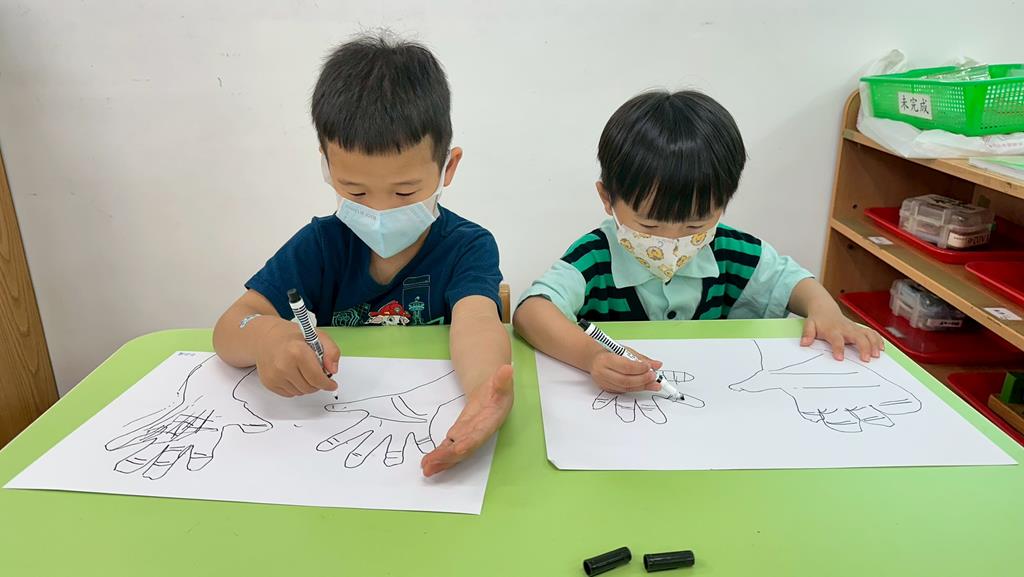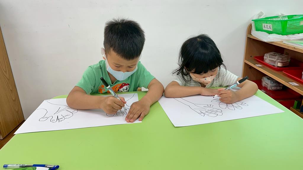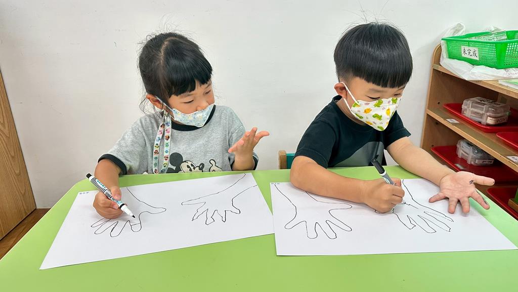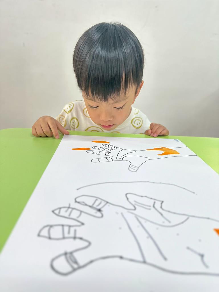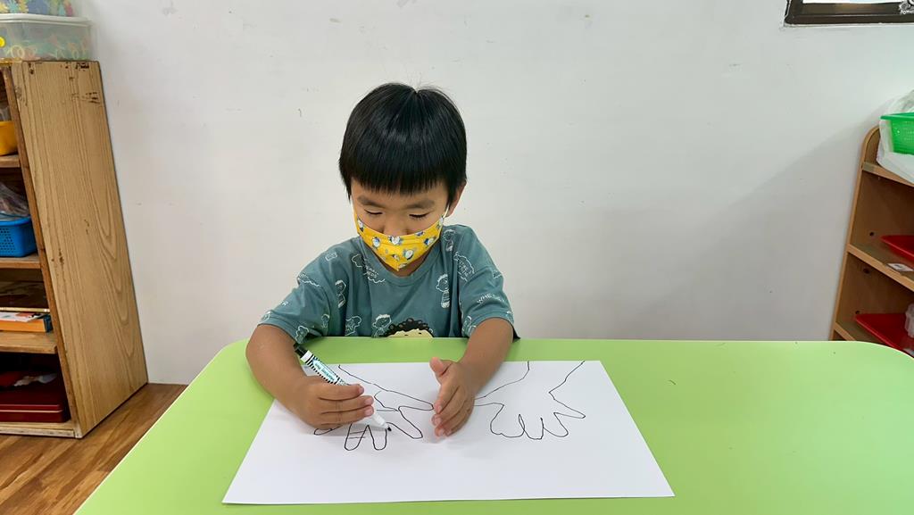 將手掌描在圖畫紙上