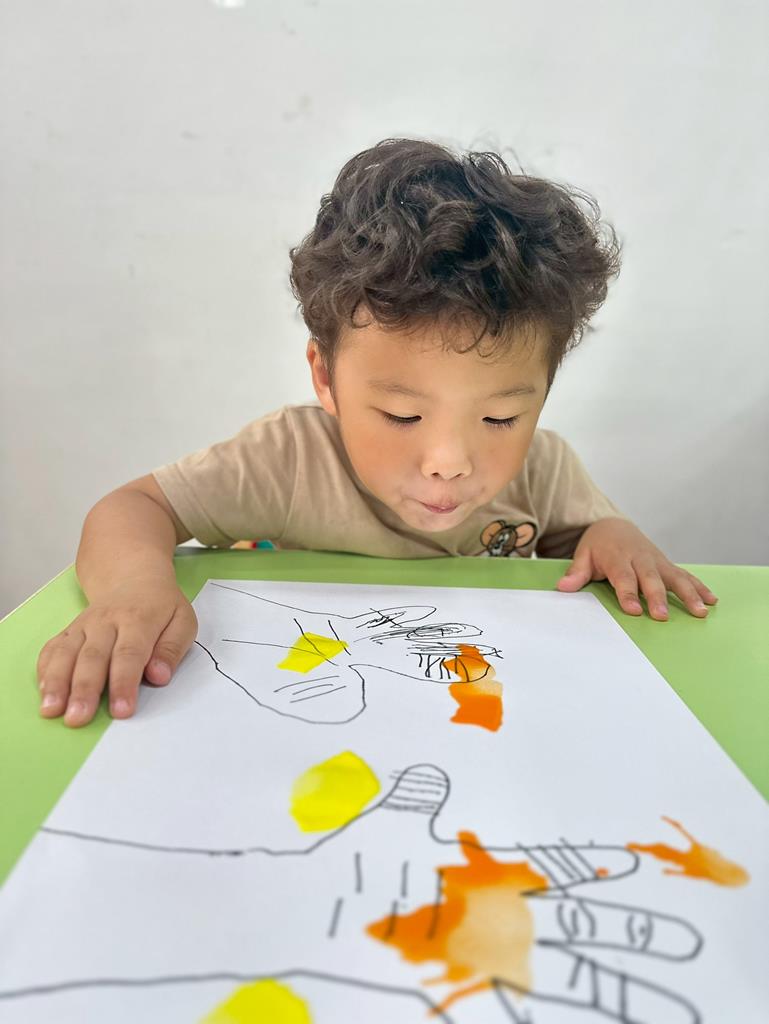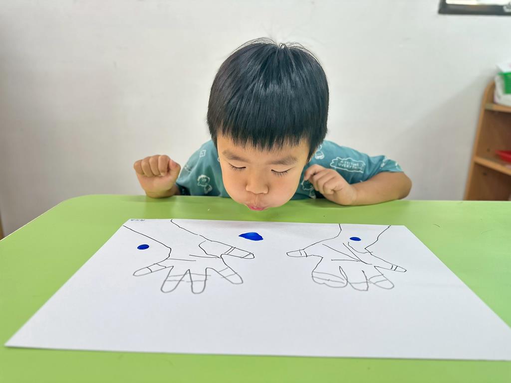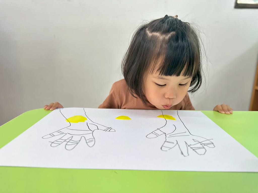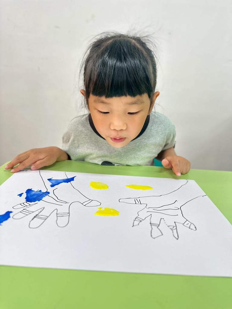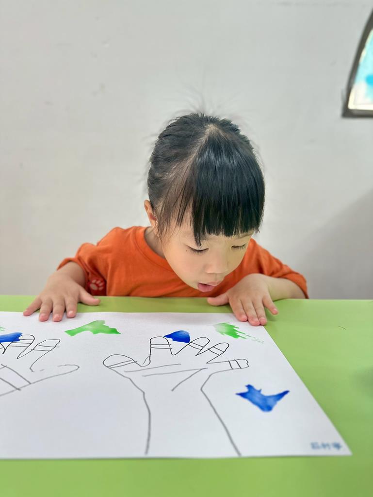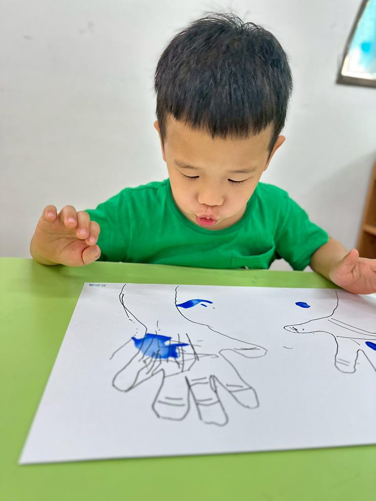 將手掌描在圖畫紙上
