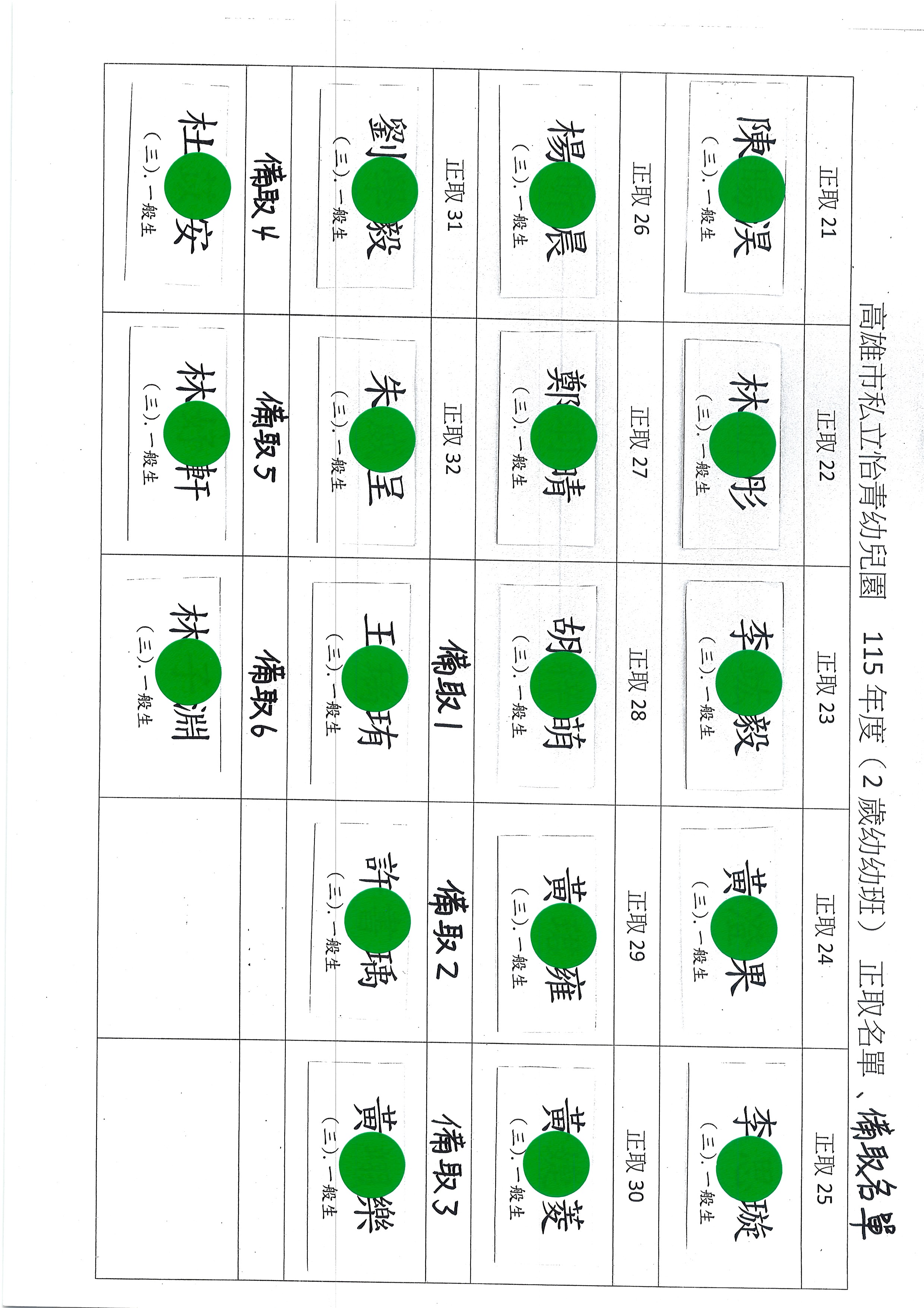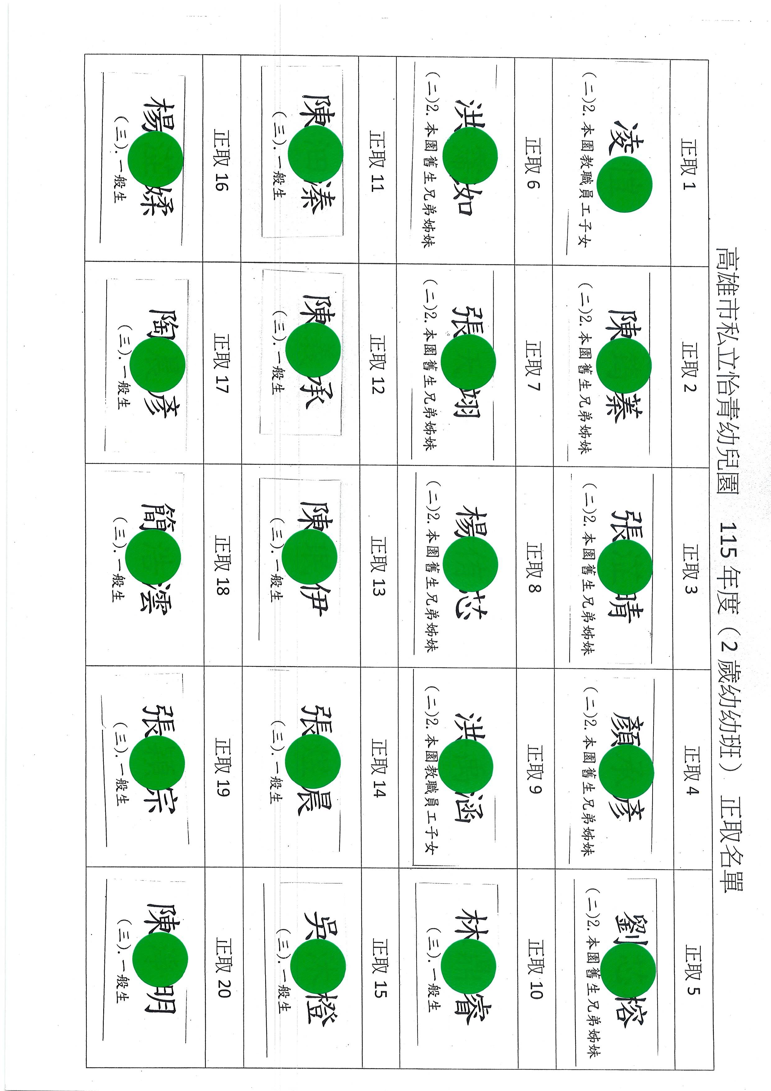 115學年度幼幼班正備取名單